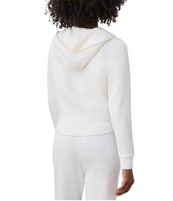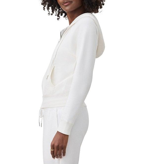 From Splendid, this jacket features:Knit fabrication Hoodie silhouetteCrewneck Long sleeveFunctional front pocketsHooded with drawstring Ribbed sleeve trim and hemline Zip front full closureApprox. 22.75" in length Eco vero/spandex Machine wash Imported.