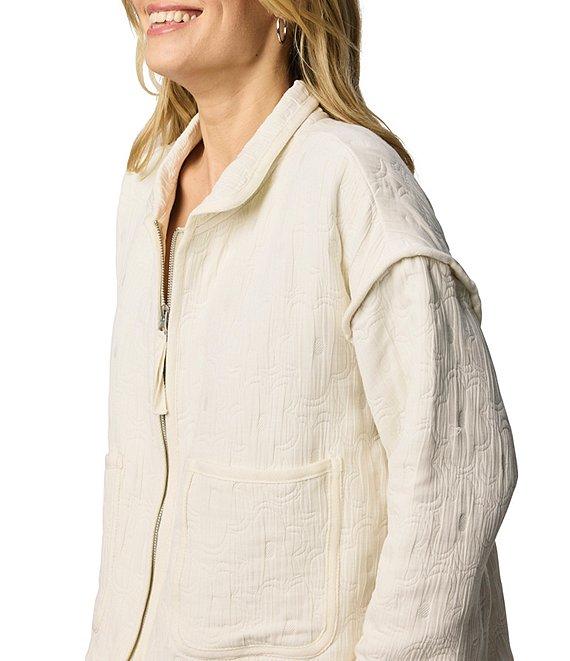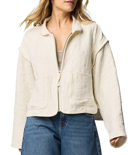 From Splendid, this jacket features: Rounded camp collar neckline Long sleeves with dropped shoulders Front functional waist pockets Rounded hemline with vents Front zipper closure Approx. 21" length Polyester/cotton Hand wash Imported.