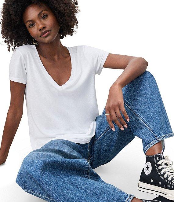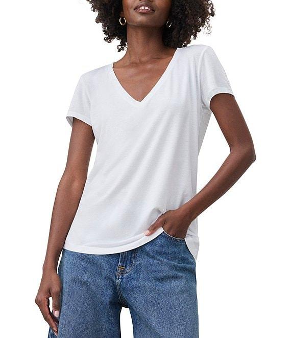 From Splendid, this tee features: V-neckline Short sleeves Straight hemline Pullover construction Approx. 25.5" in length Cotton/modal/elastane Machine wash inside out/tumble dry Imported.