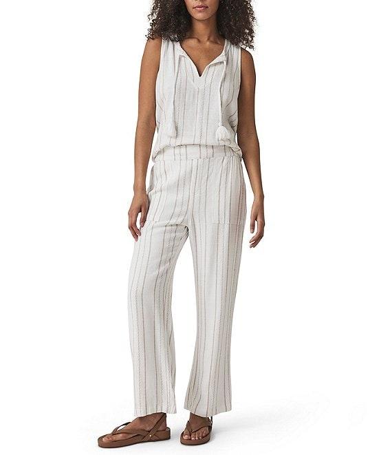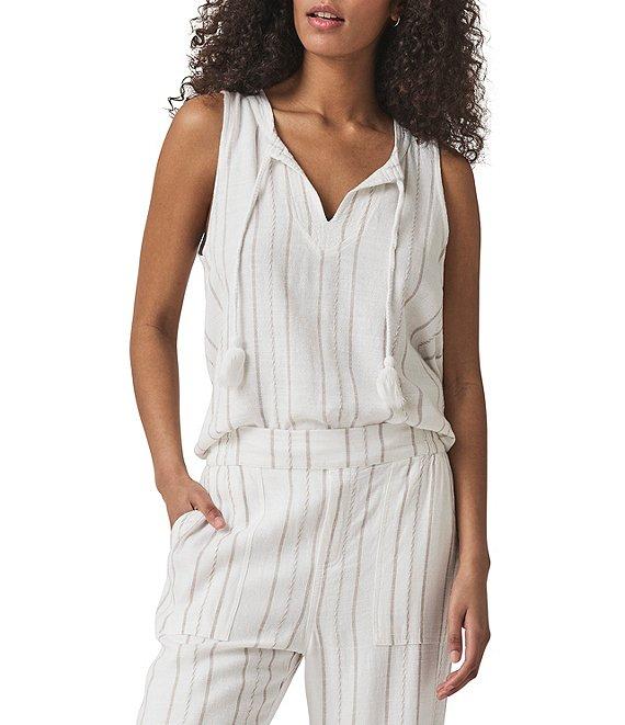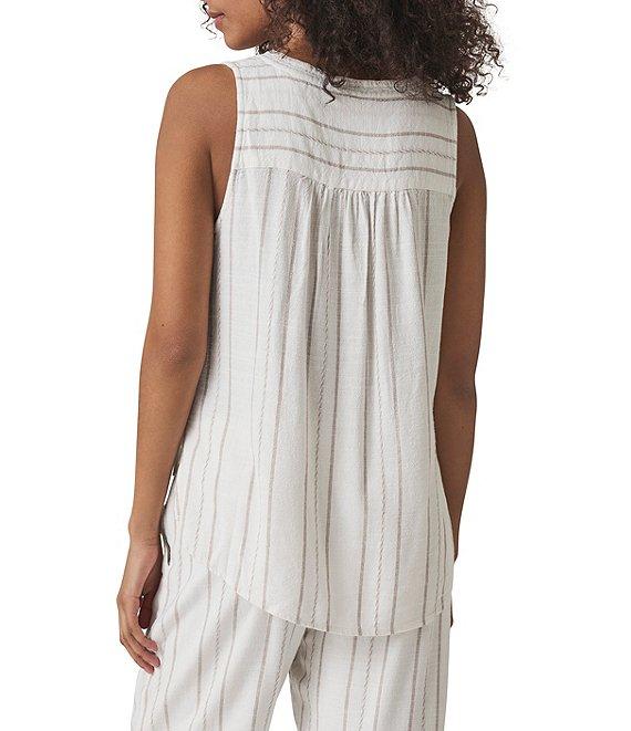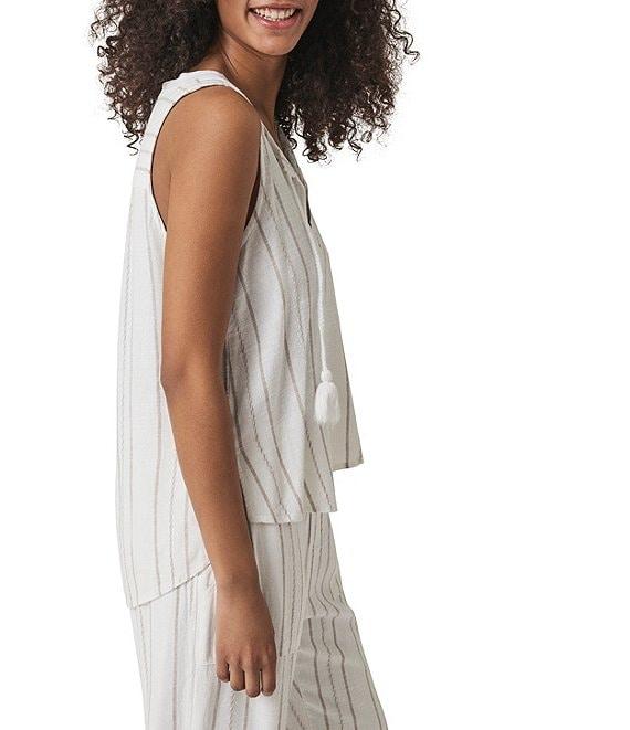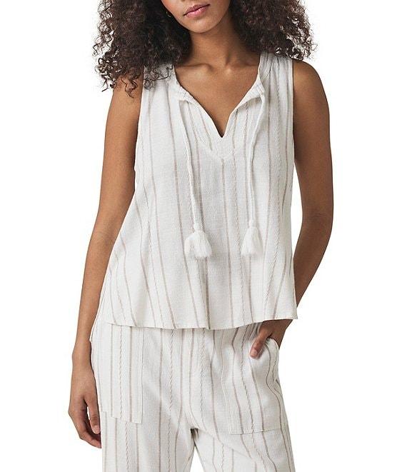 Splendid Layla Knit Stripe Print Linen Blend Split V-Neck Sleeveless Coordinating Tank Top