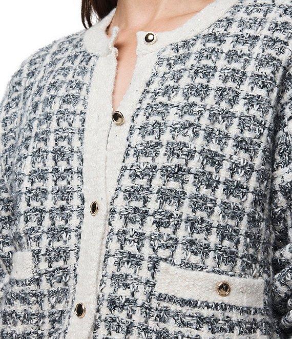 Splendid Lisette Textured Knit Plaid Round Neck Long Sleeve Cropped Cardigan