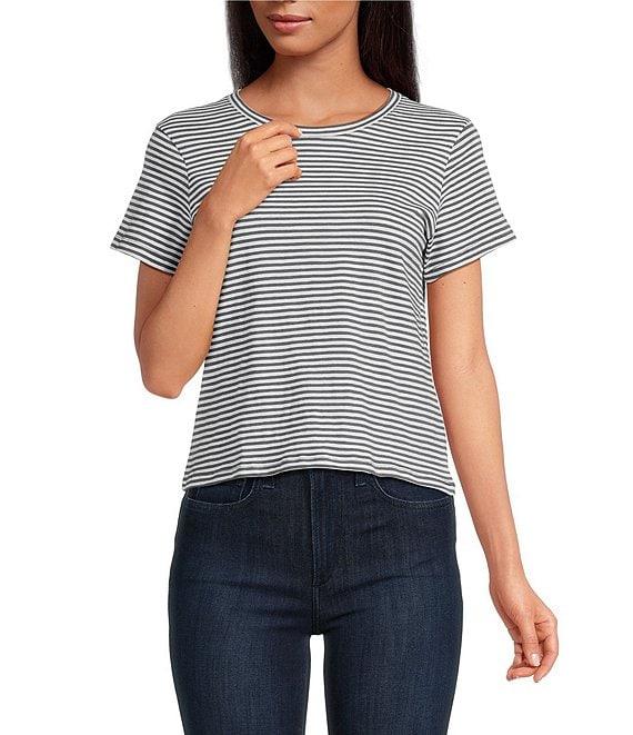 Splendid Louisa Knit Stripe Print Crew Neck Short Sleeve Shirt