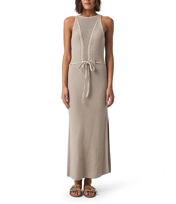 Splendid Micah Pointelle Knit Halter Neck Sleeveless Sheath Midi Dress
