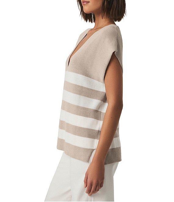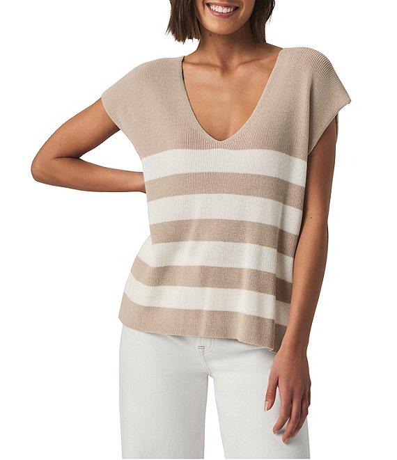 Splendid Octavia Knit Chest Stripe V-Neck Dropped Short Sleeve Box Top Sweater