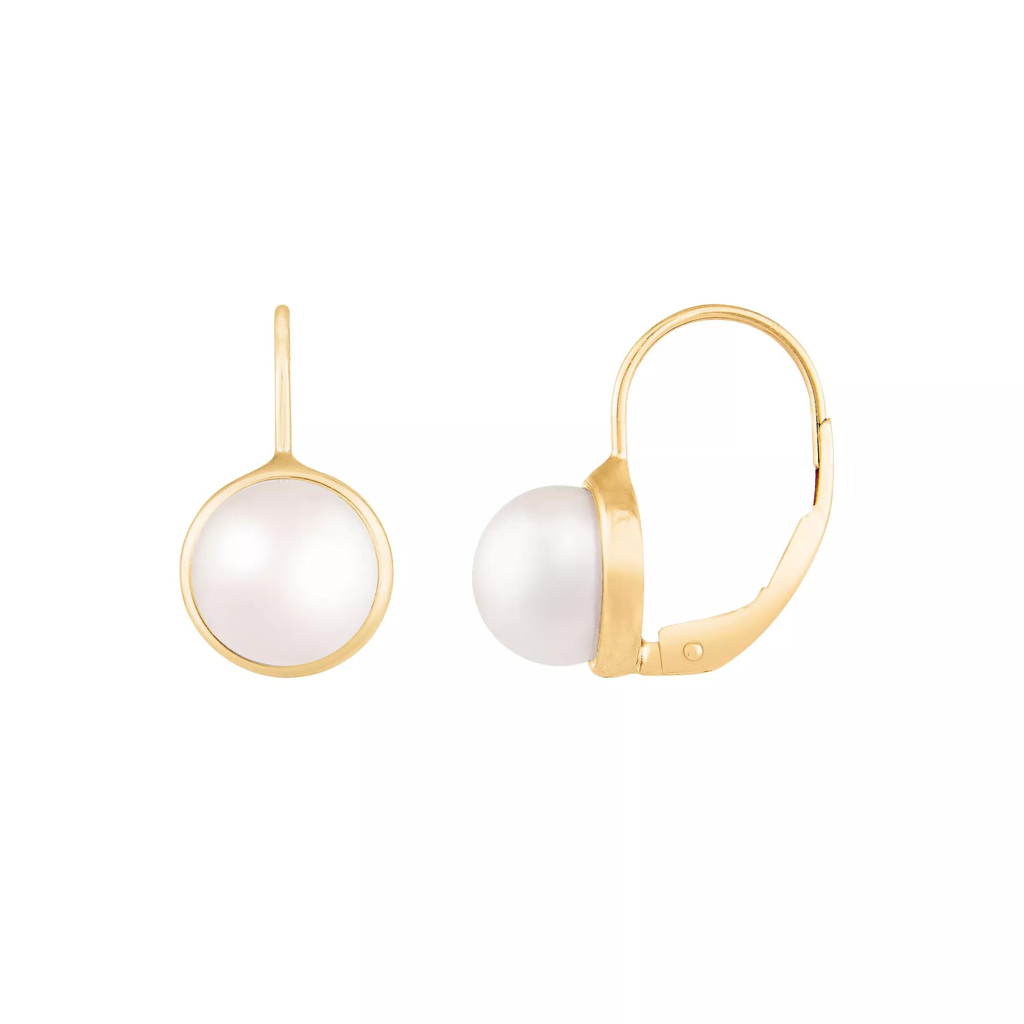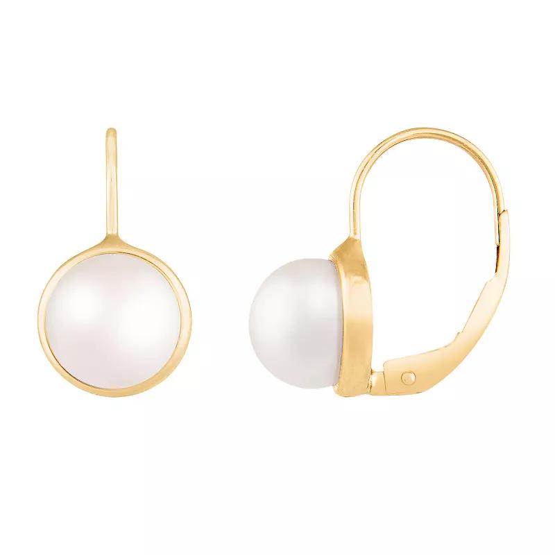 Accessorize your look with these freshwater cultured pearl leverback earrings. Accessorize your look with these freshwater cultured pearl leverback earrings. Length: 0.75 in. Nickel free Metal: 14k gold Finish: polished Packaging: velvety pouchCULTURED PEARL DETAILS Type: freshwater Size: 6 mm - 7 mm Shape: button Color: white Gemstones may have been treated to enhance their appearance. Special care may be required. Please visit our Gemstone Treatment & Special Care Guide for more information. Size: One Size. Color: Yellow. Gender: female. Age Group: adult.