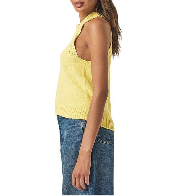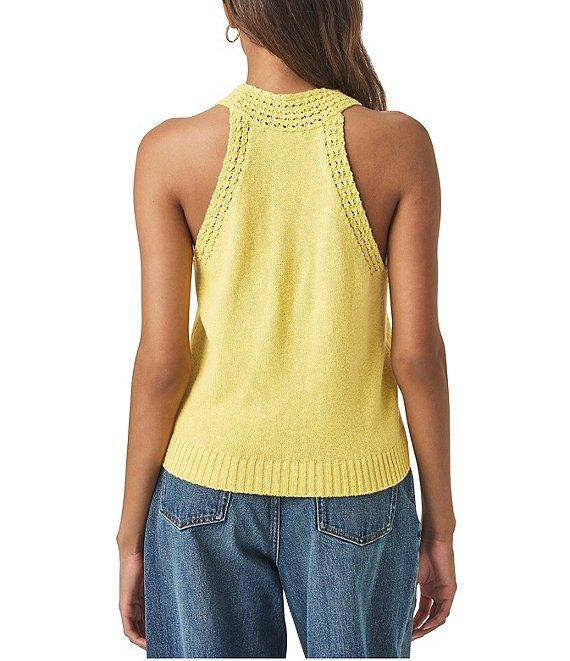 From Splendid, this top features: Woven fabrication Tank silhouette Crewneck Sleeveless Larger gauge open knit at neckline, sleeve trim, and hemline Pullover construction Approx. 19.75" in length Cotton Dry clean only Imported.