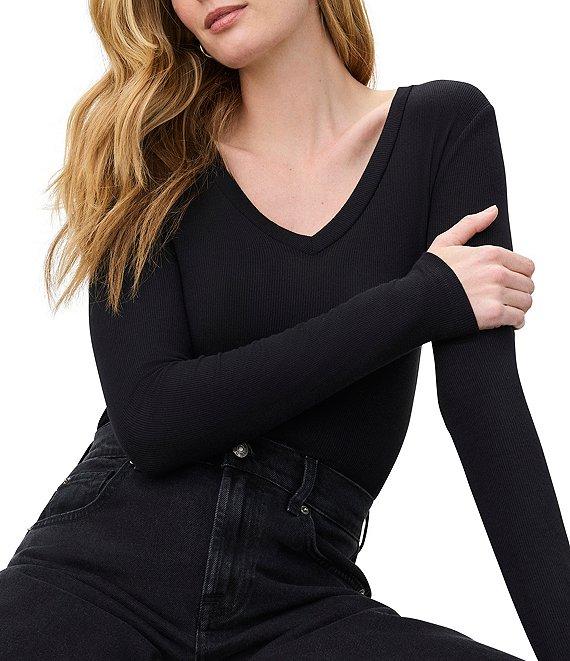 From Splendid, this tee shirt features: V-neckline Long sleeves Pullover sonstruction Approx. 24" in length Modal/spandex Machine wash/dry flat Imported.
