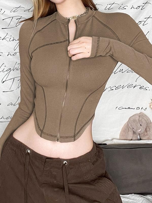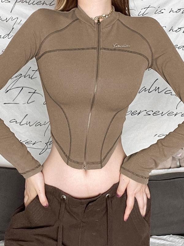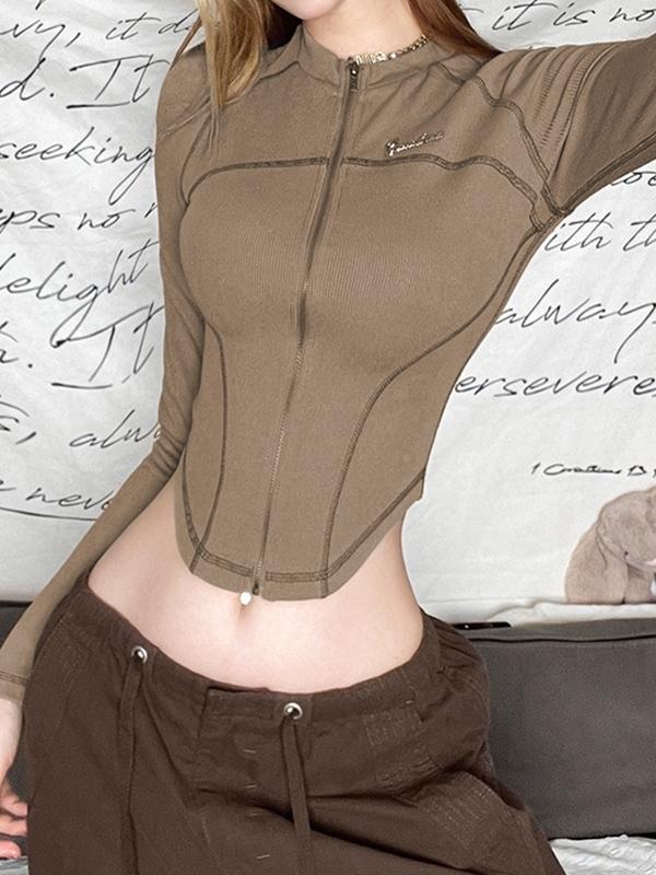 Splice Zip Up Irregular Hem Long Sleeve Knit