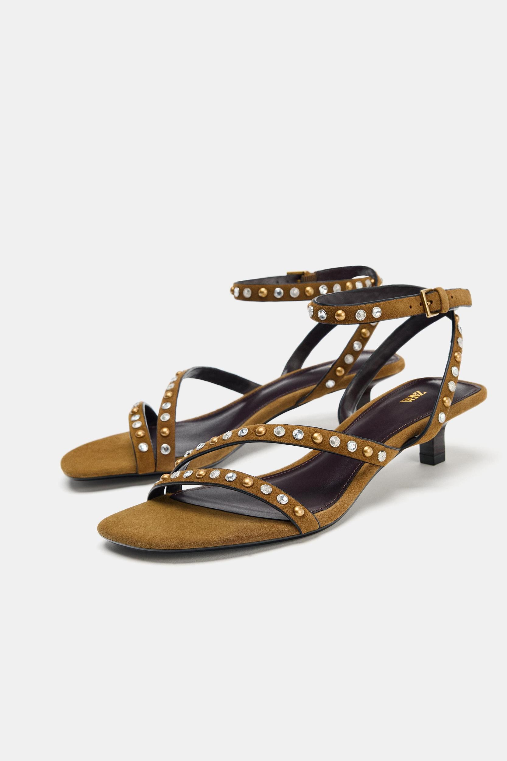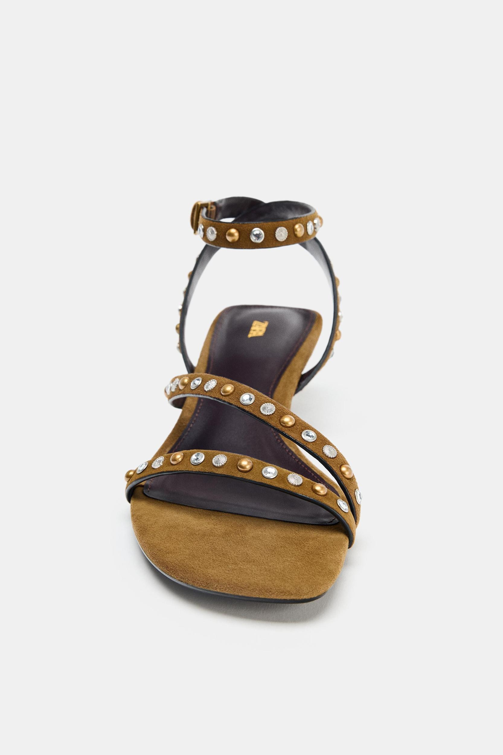SPLIT LEATHER STUDDED KITTEN SANDAL