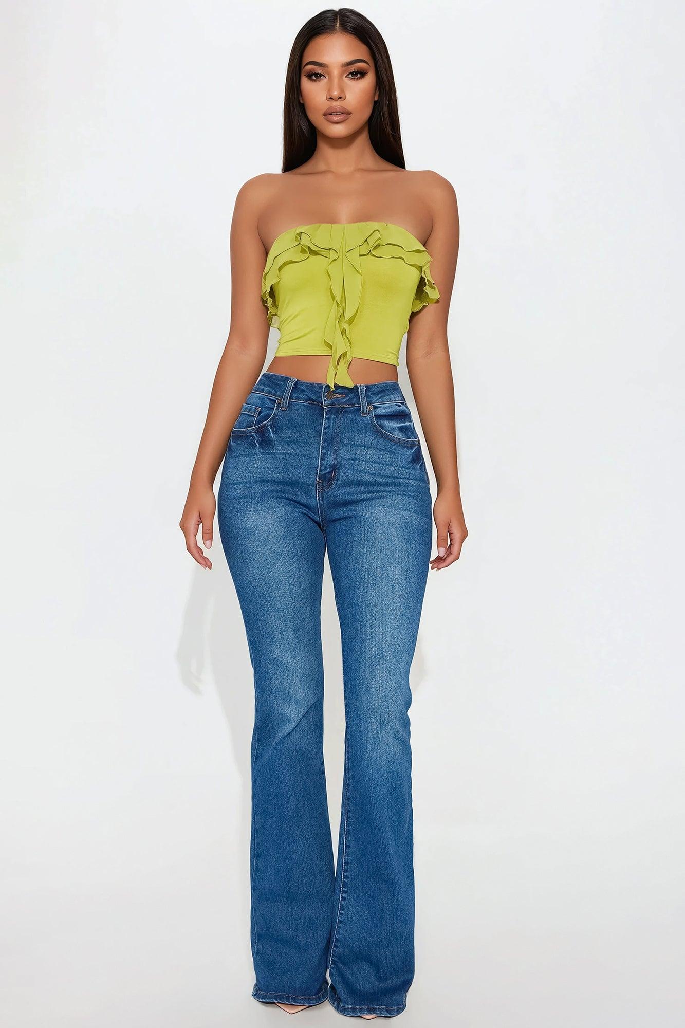Spoiling Myself Strapless Ruffle Top - Chartreuse