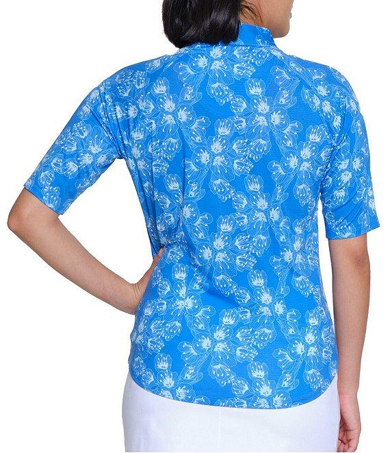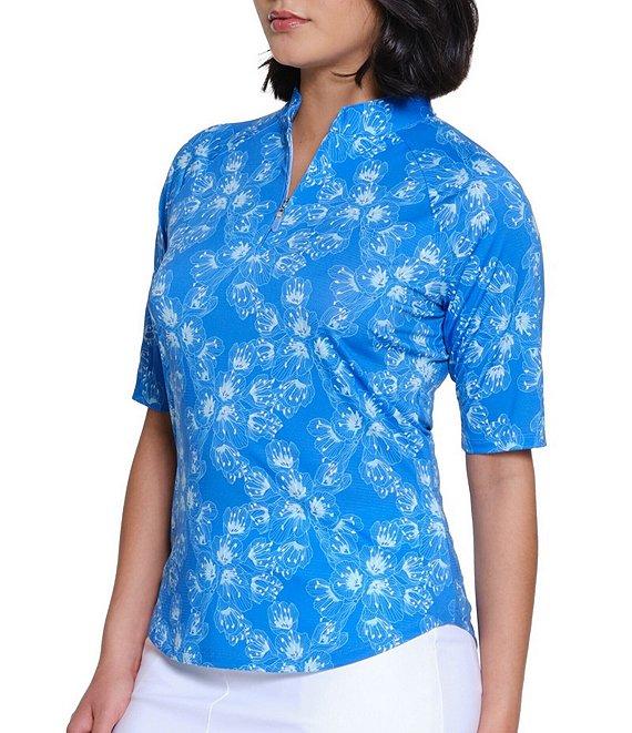 Sport Haley Arlette Printed Quarter Zip Mock Neck Elbow Sleeve Top