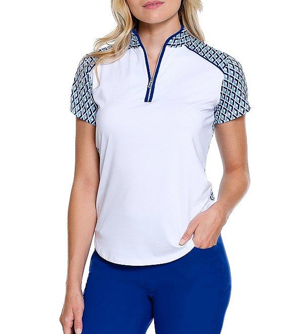 Sport Haley Bridget Contrast Print Collared Half Zip Short Sleeve Polo Top