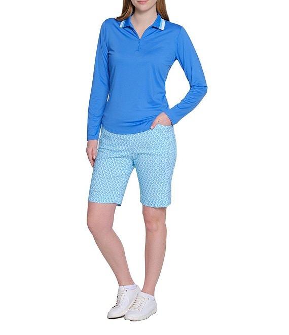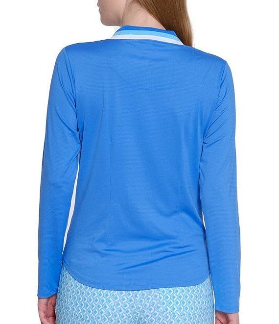 From Sport Haley, this polo features:Moisture wicking, stretch fabricationCollared, v-necklineLong sleevesInvisible quarter zip closurePullover construction 50+ UPF sun protectionApprox. 25.5" length Polyester/spandexMachine wash Imported.