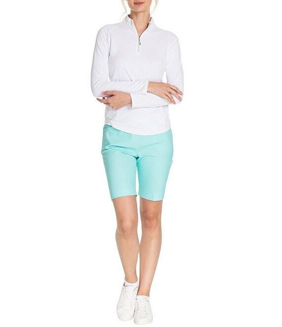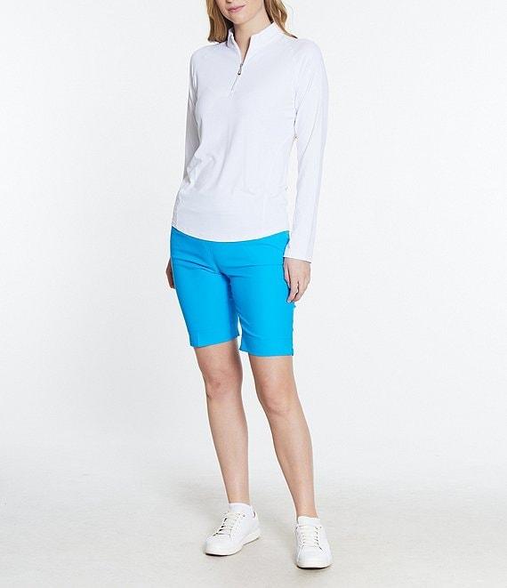 From Sport Haley, this top features: Mock neckline Long sleeves Mesh undersleeve UPF 50+ Cooling Moisture Wicking Straight hem Quarter zip front closure Approx. 25" length Nylon/spandex Machine wash/tumble dry Imported.