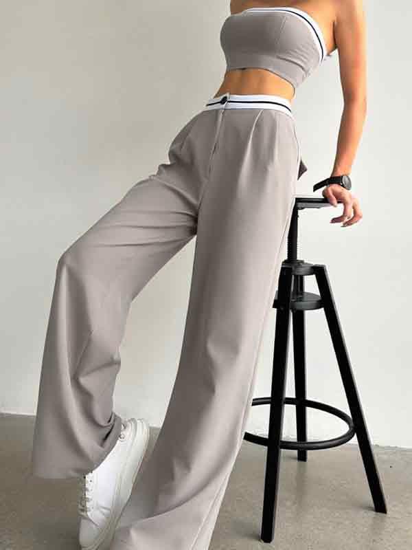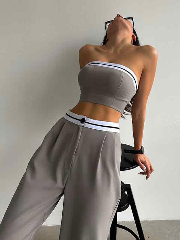 Sports Vest Tube Top High Waist Wide Leg Trousers Casual Two Piece