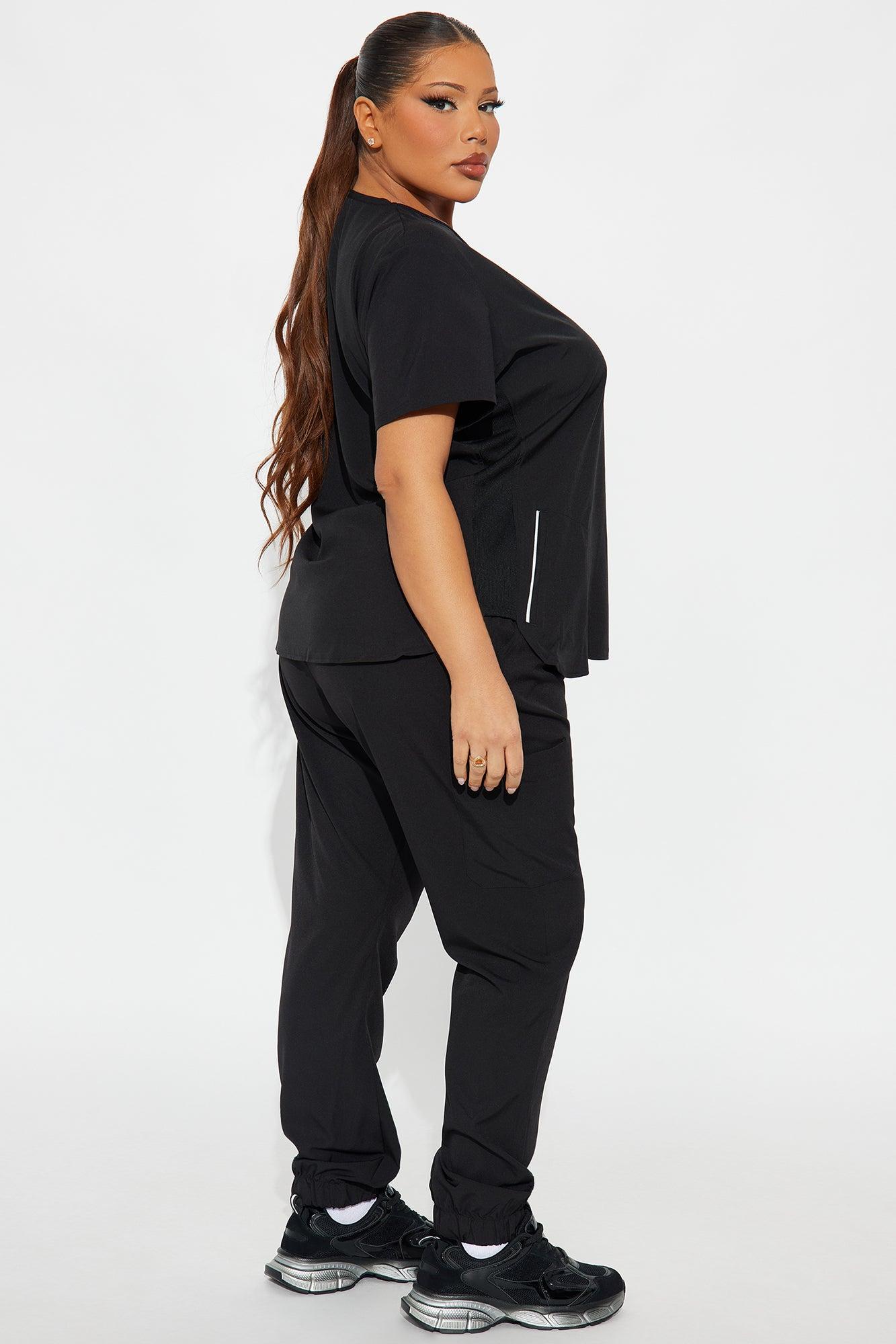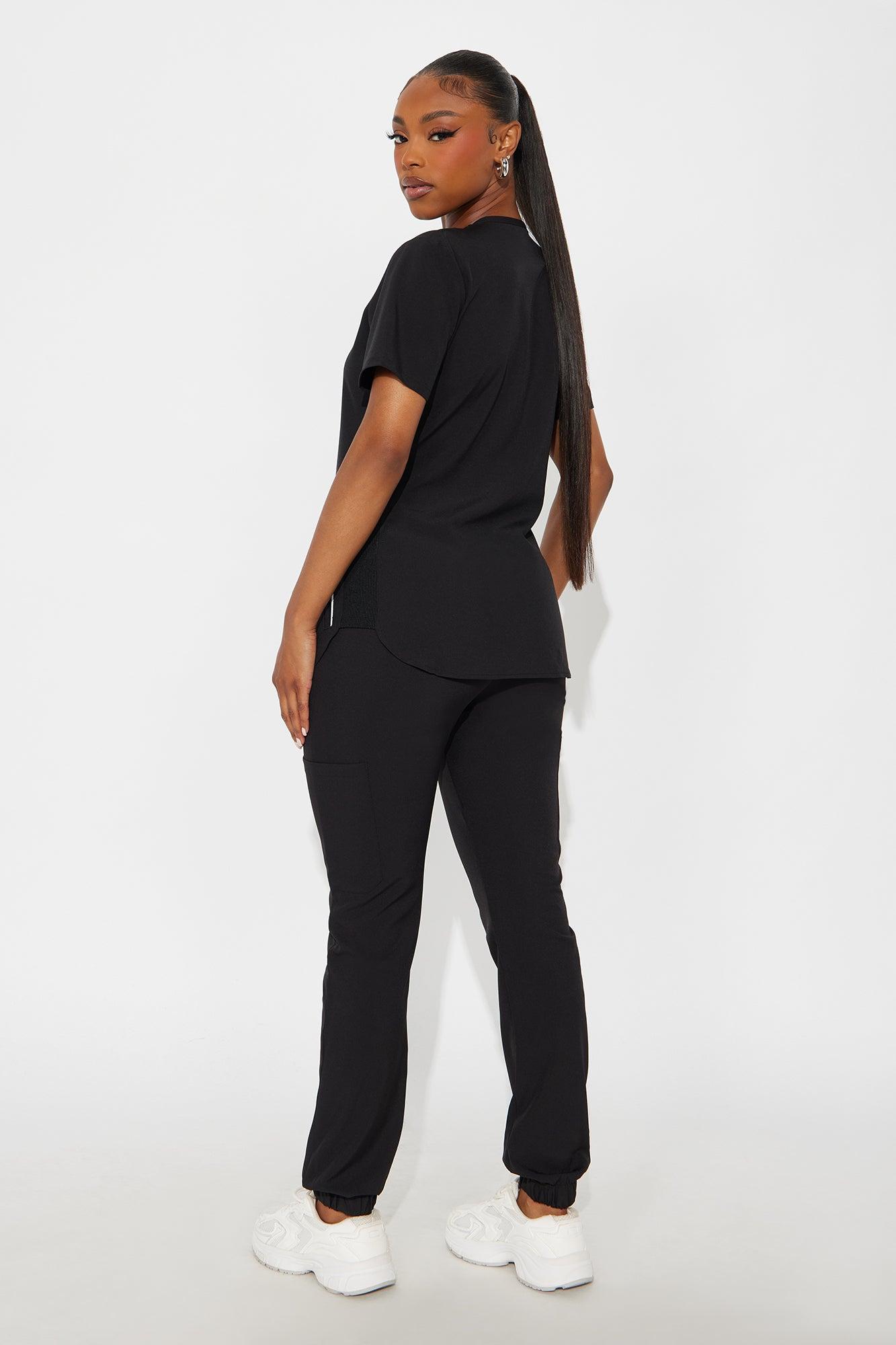 Available In Black, Blue Jay And Rust. Uniform Scrub Set Short Sleeve Reflective Piping Inner Patch Pocket Three Inch Curve Hem Side Knit Ribbed Panel Elastic Drawstring Waistband Double Stich Curved Inner Patch Pocket Elastic Jogger Cuff Final Sale Self : 93% Polyester 7% Spandex Imported California Proposition 65WARNING: Cancer and Reproductive Harm - www.P65Warnings.ca.gov.