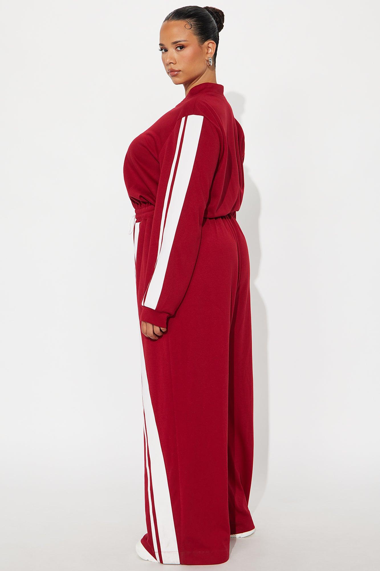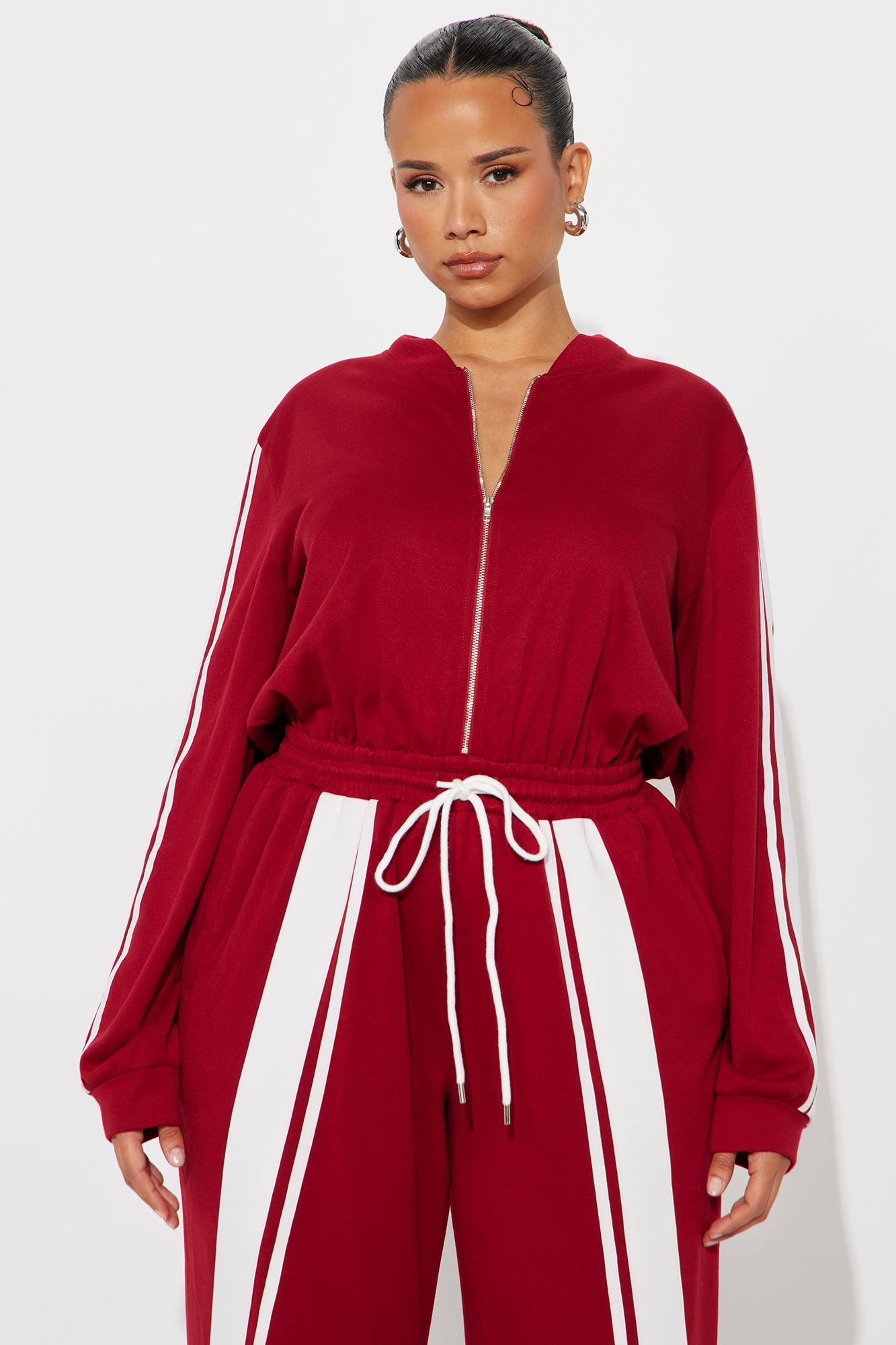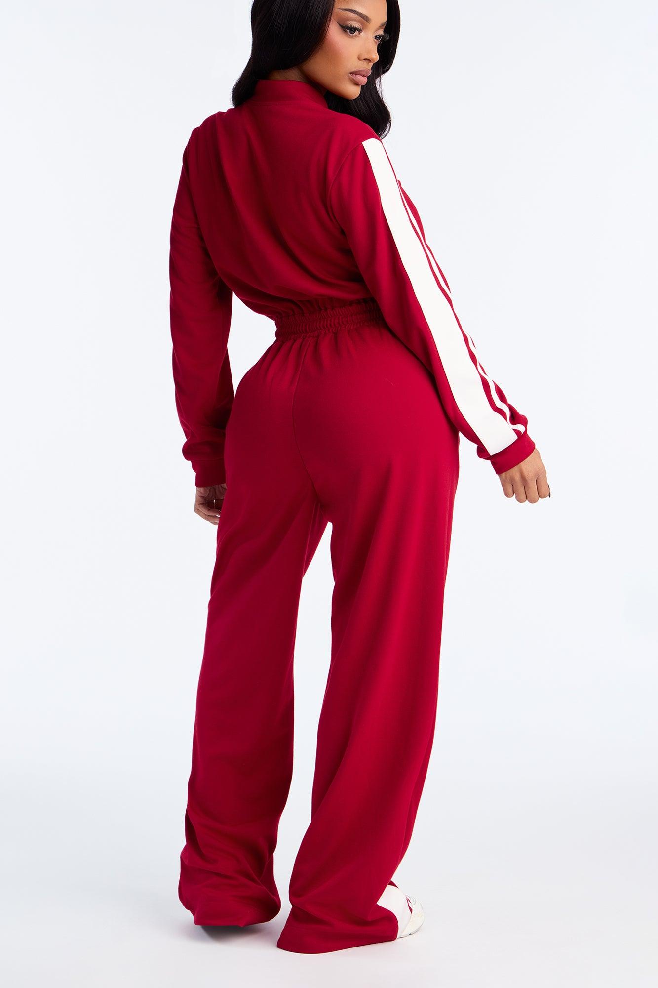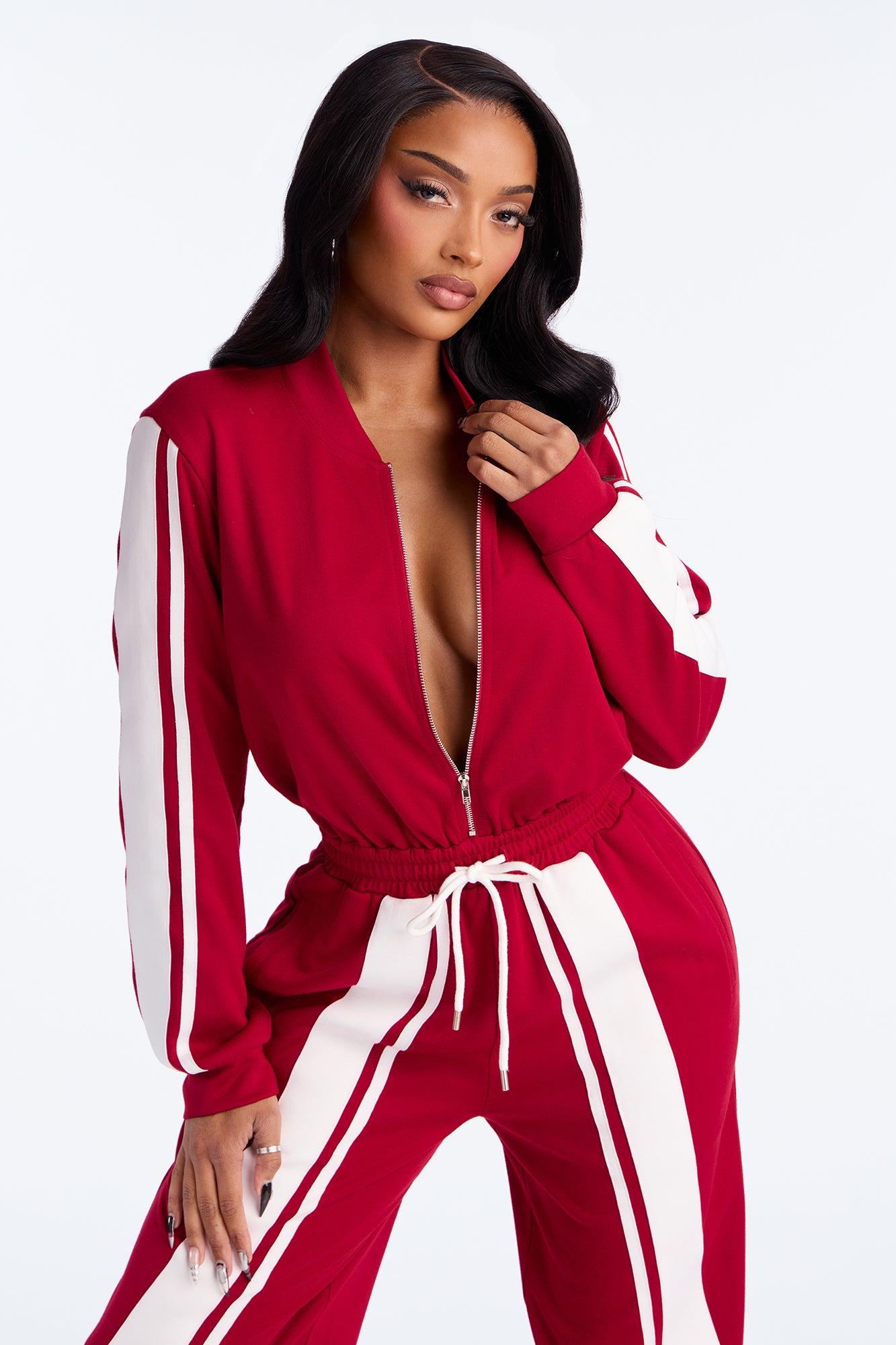Sporty Vibe Long Sleeve Jumpsuit - Red Female
