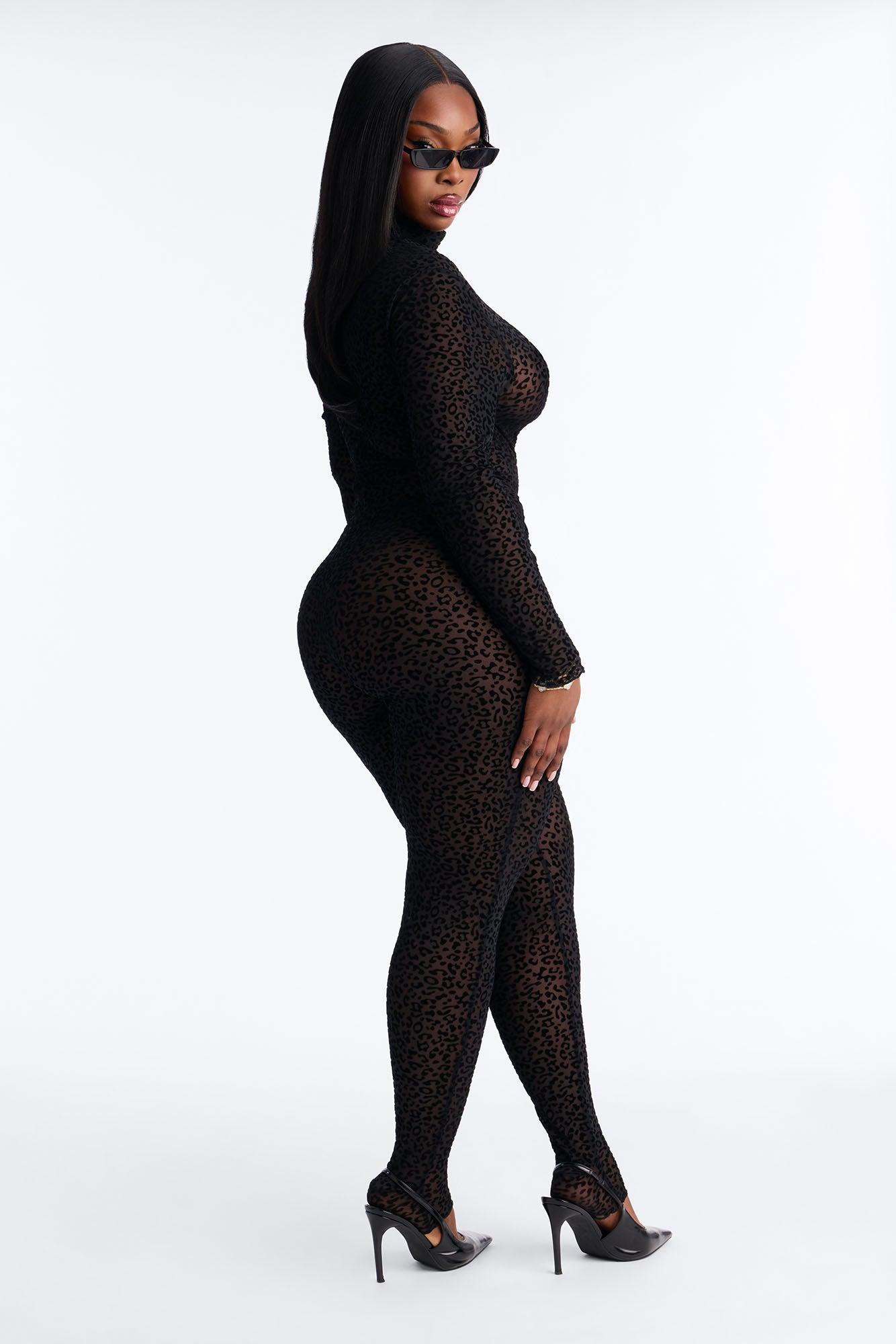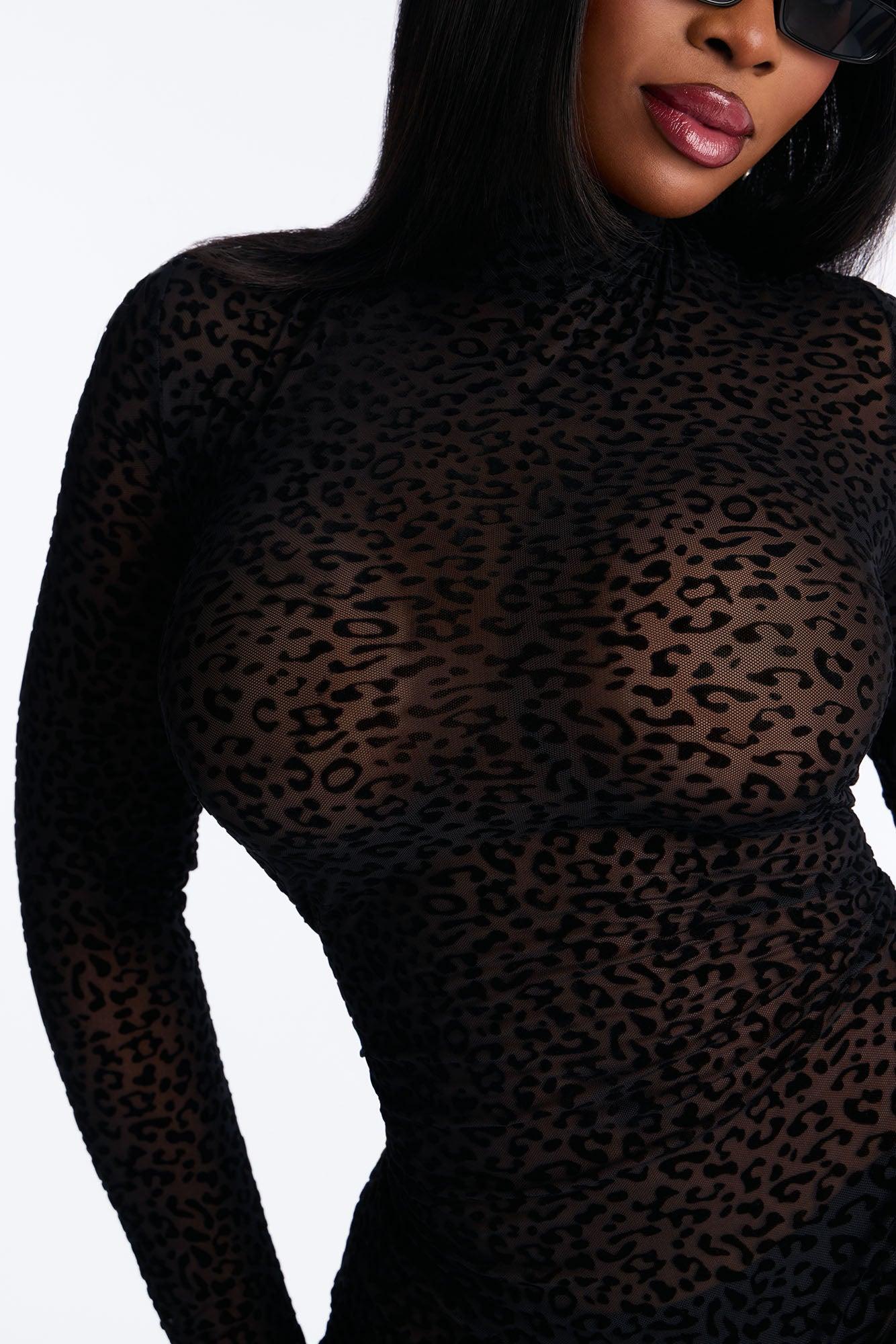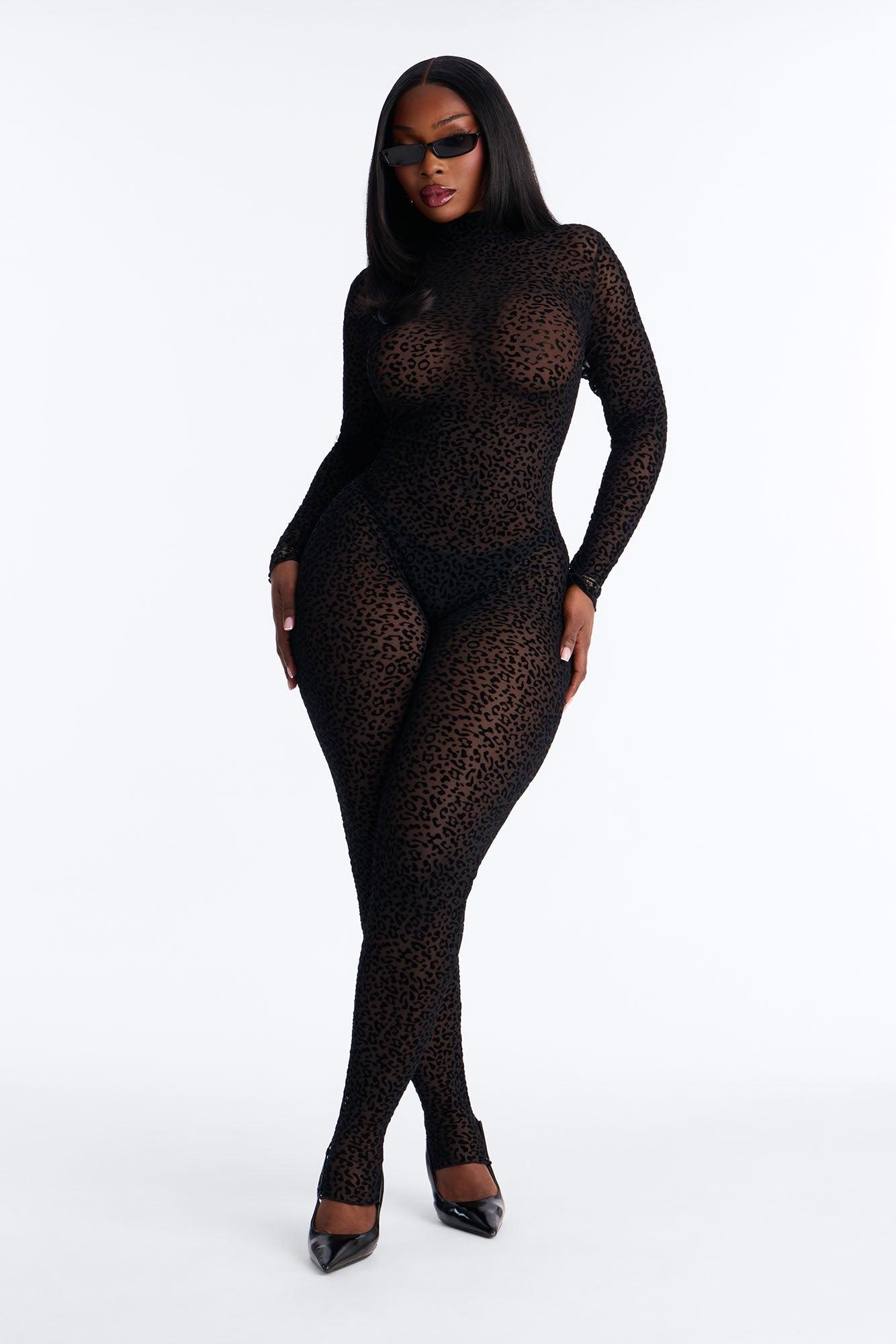Spotted Desire Leopard Mesh Jumpsuit - Black/Black Female