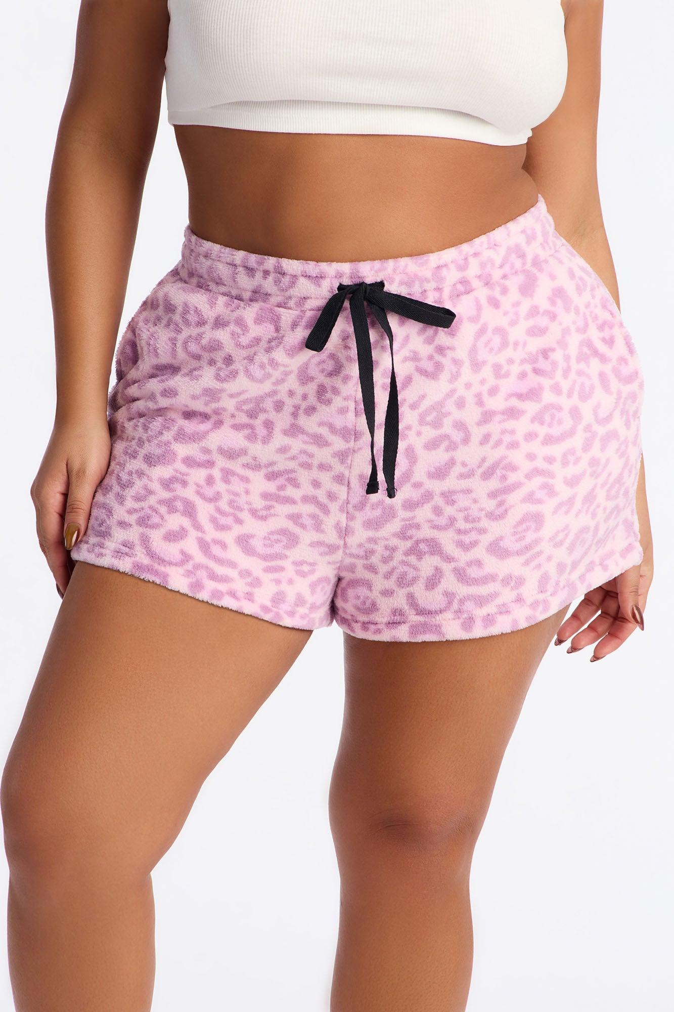 Available In Pink. PJ Short Plush Leopard Print Elastic Waistband Drawstring Stretch Final Sale Disclaimer: Print Placement Will Vary. Self: 100% Polyester Imported