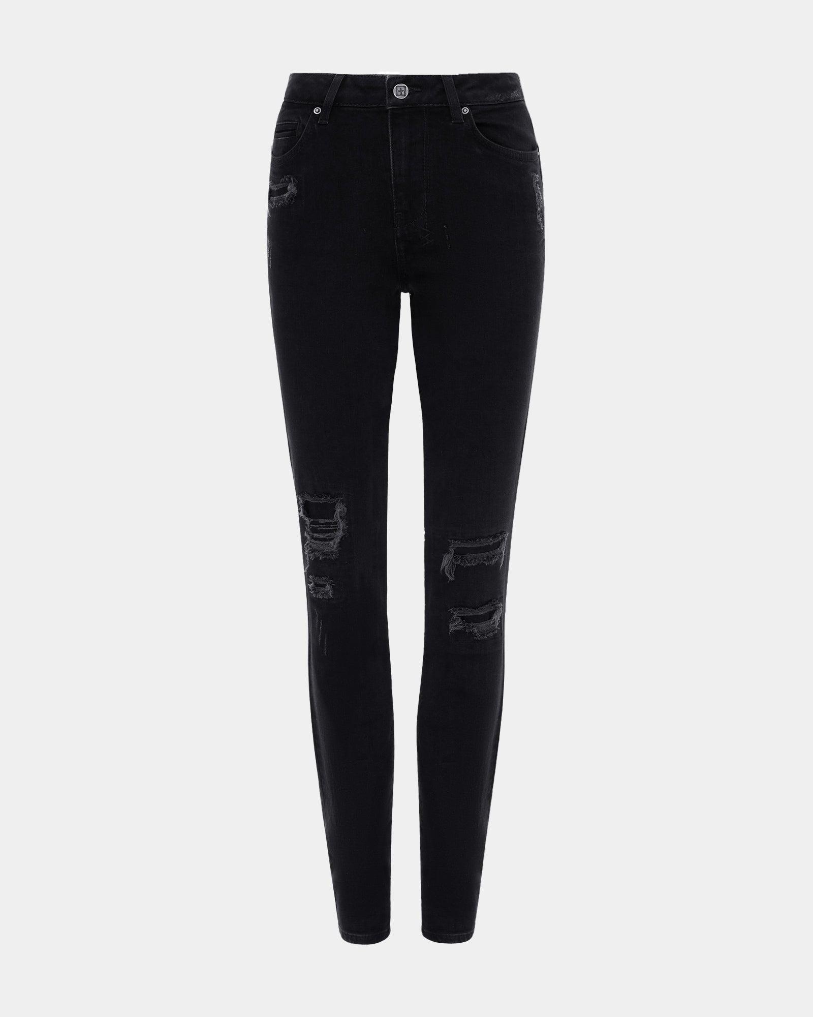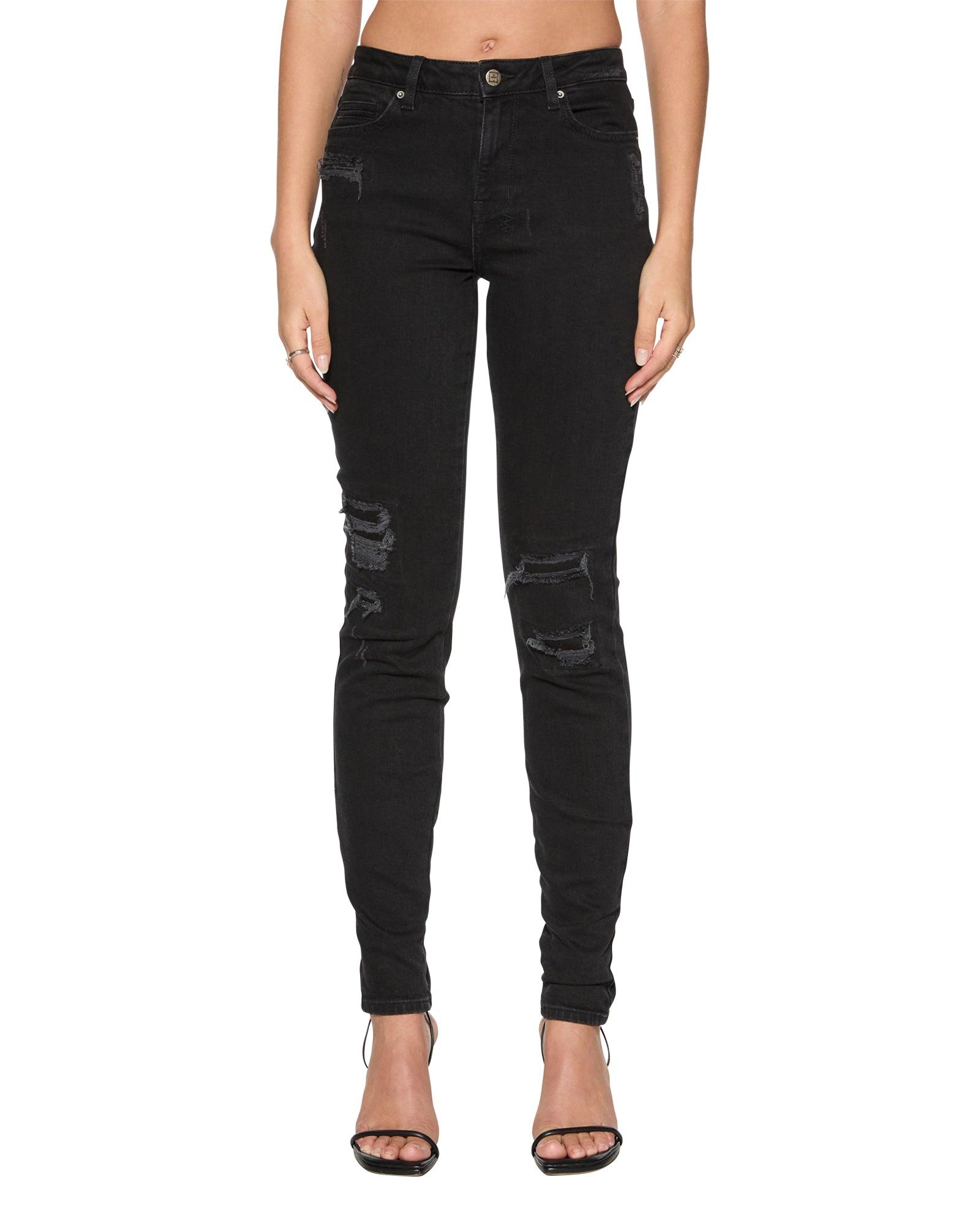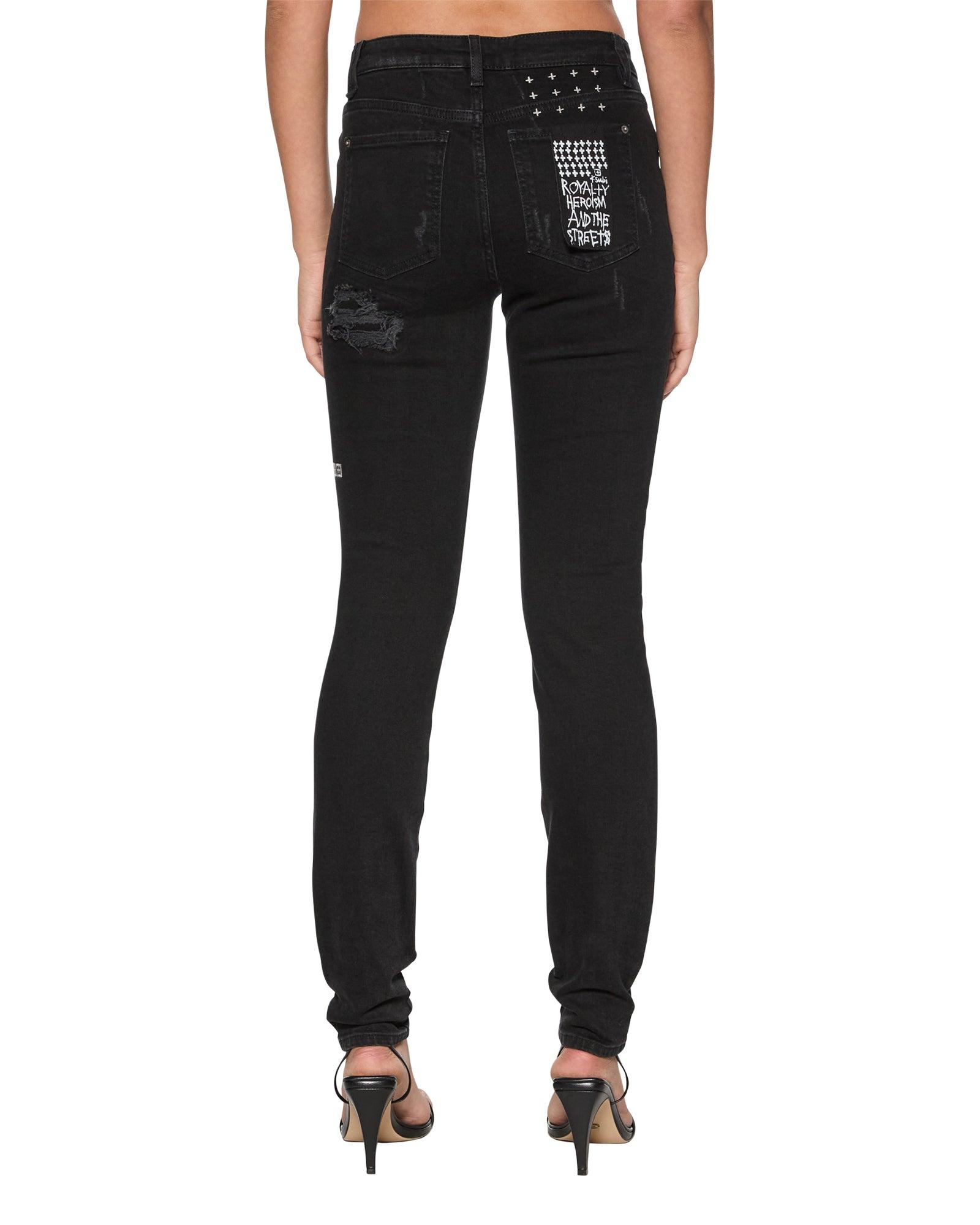The Spray on Xtra Boneyard Black is a mid rise skinny fit jean with classic pocket detailing and designed with a continuous belt loop on wearer's left hand side. Made from a premium European comfort-stretch denim, this jean is featured in a lightly stonewashed black colourway. Finished with trashing and scarring throughout and self fabric repair patching, with branded anti-silver hardware and tonal embroidery.