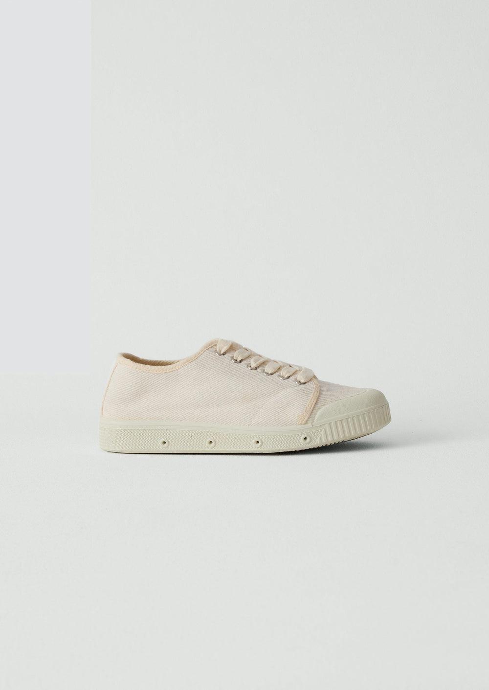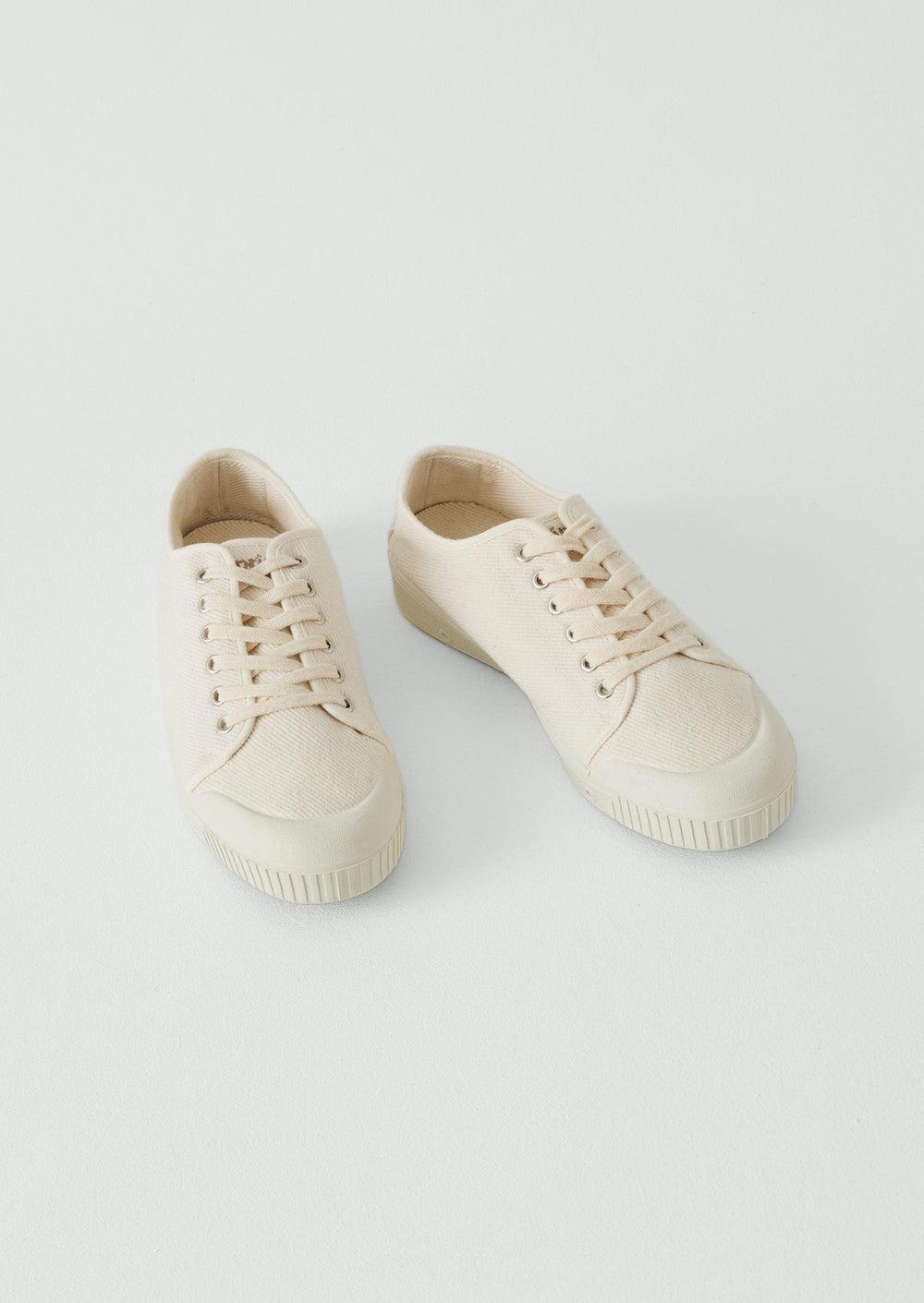 Recycled cotton twill. Cotton laces. Removable cotton lining. Rubber sole.