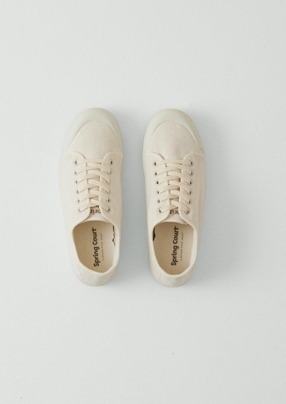 Practical plimsolls from Spring Court, tracing back to the first clay court tennis shoe created in 1936 by Georges Grimmeisen. Made from recycled cotton twill with a comfortable vulcanised rubber sole for durability. Also available in Men's sizes.