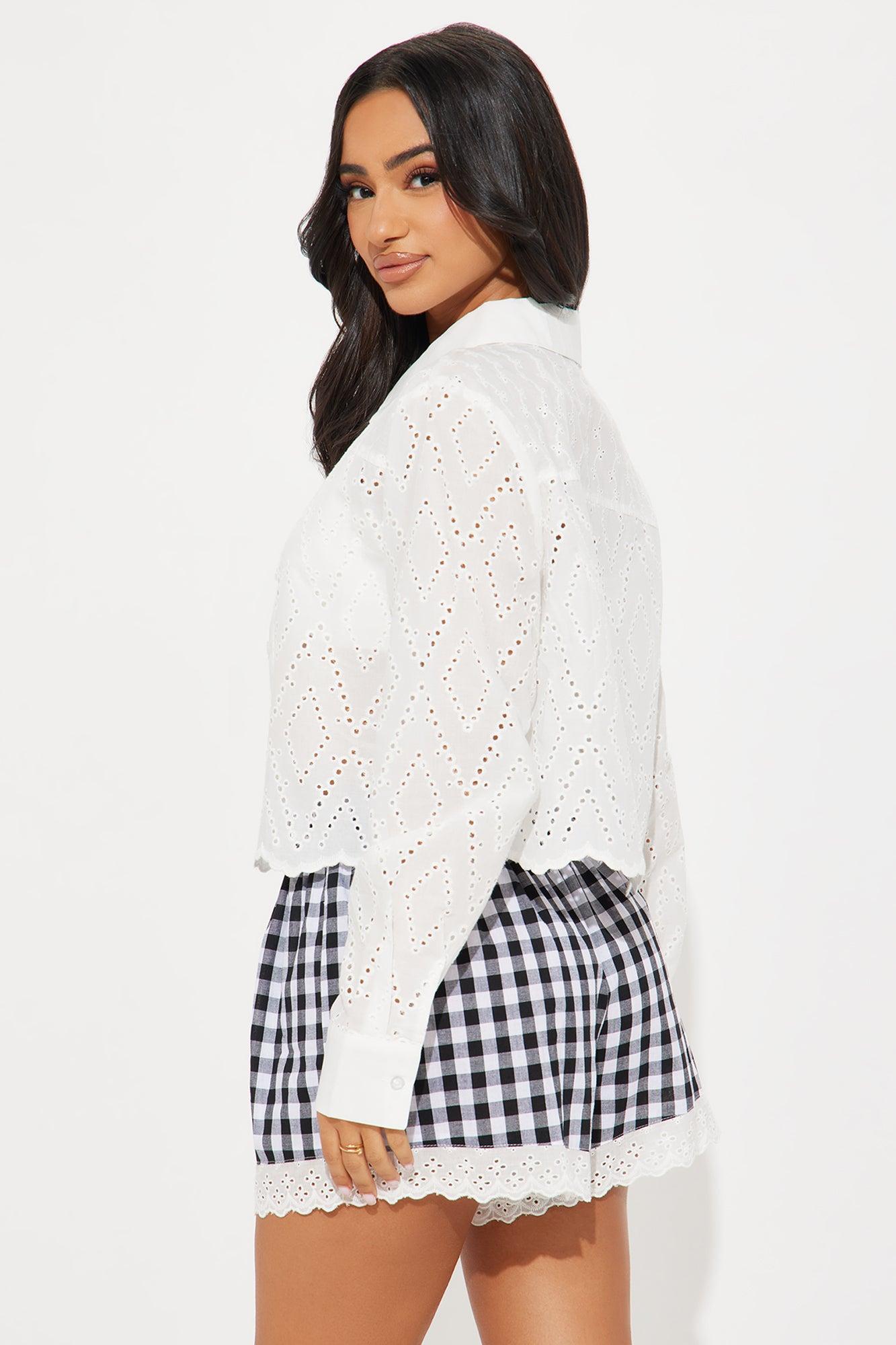Available In Off White And Black. Eyelet Shirt Button Front Shell : 100% Cotton Imported