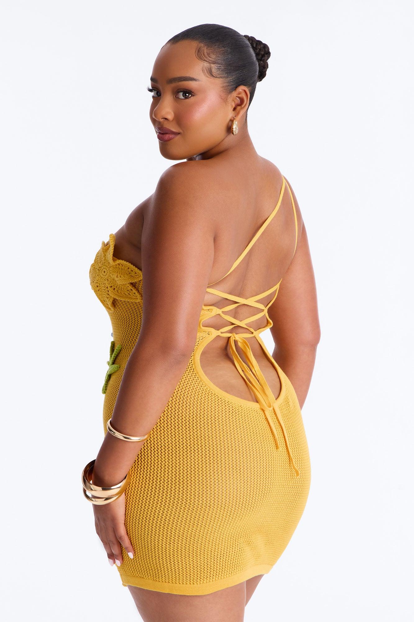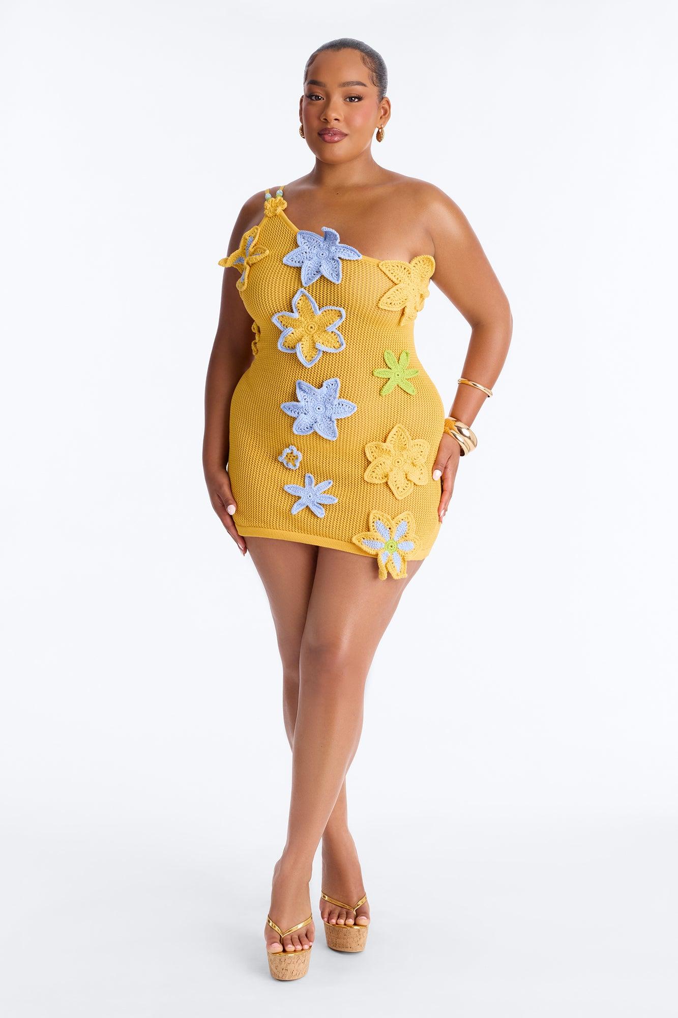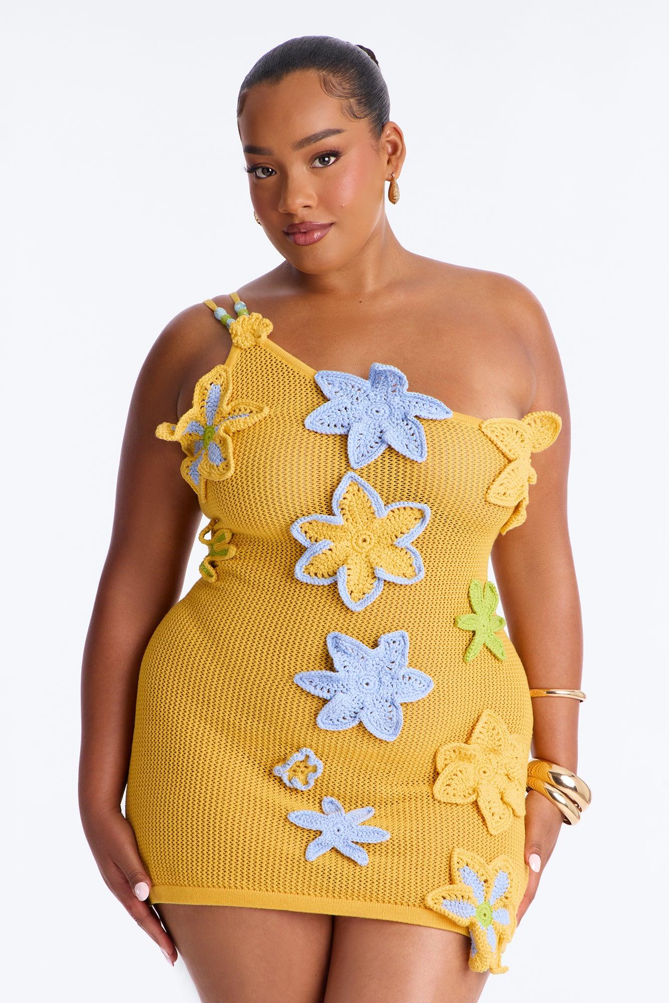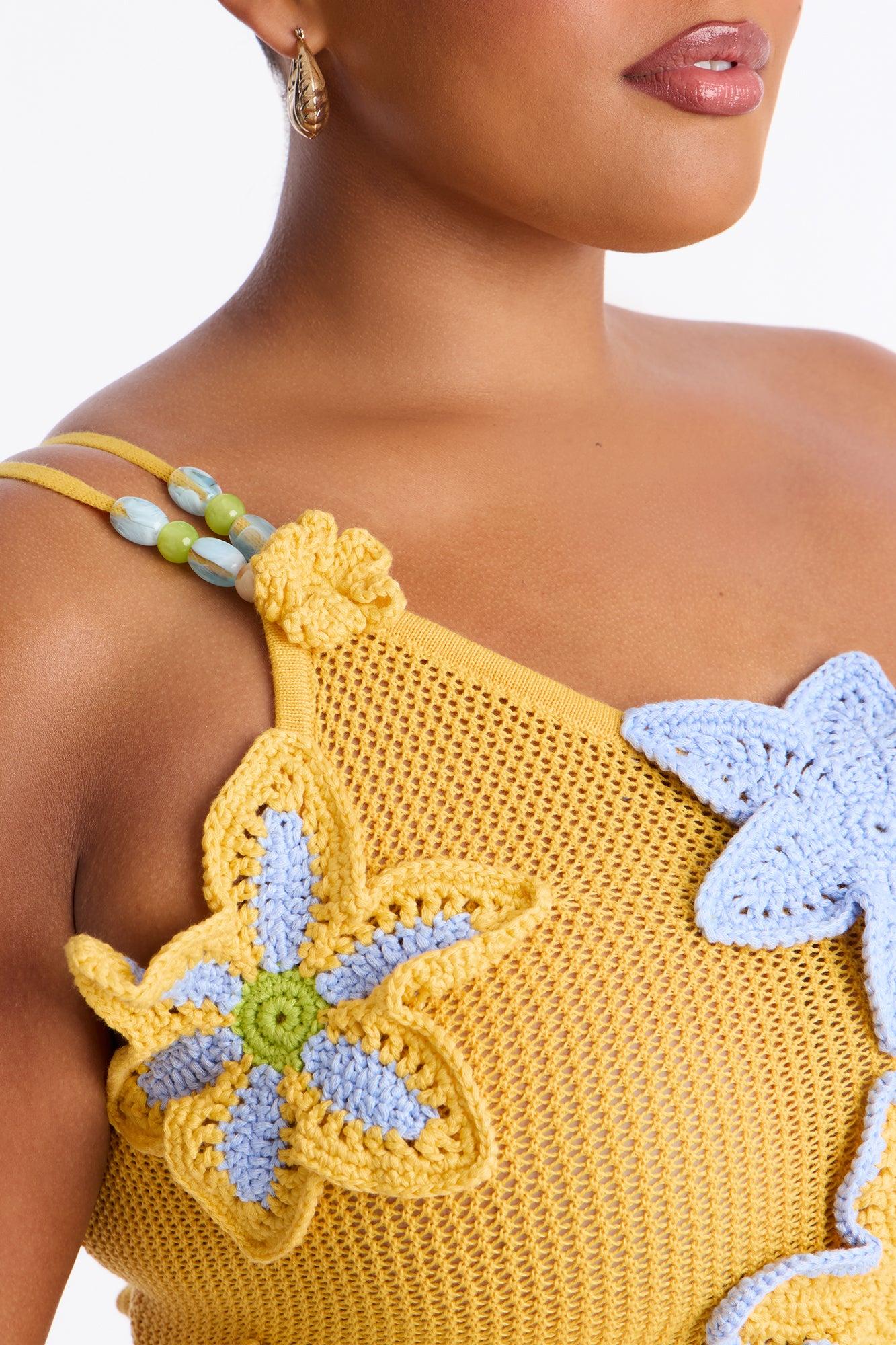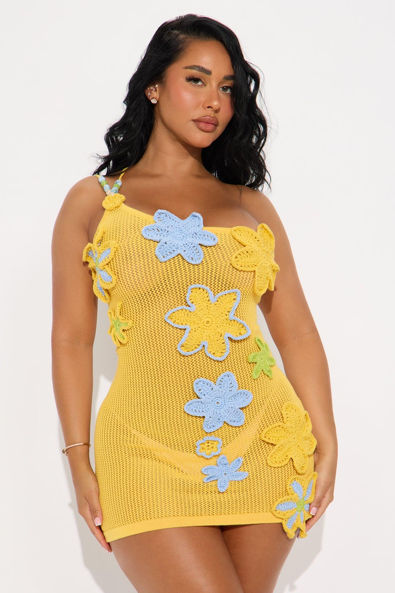 Spring Love Crochet One Shoulder Floral Cover Up - Yellow/combo