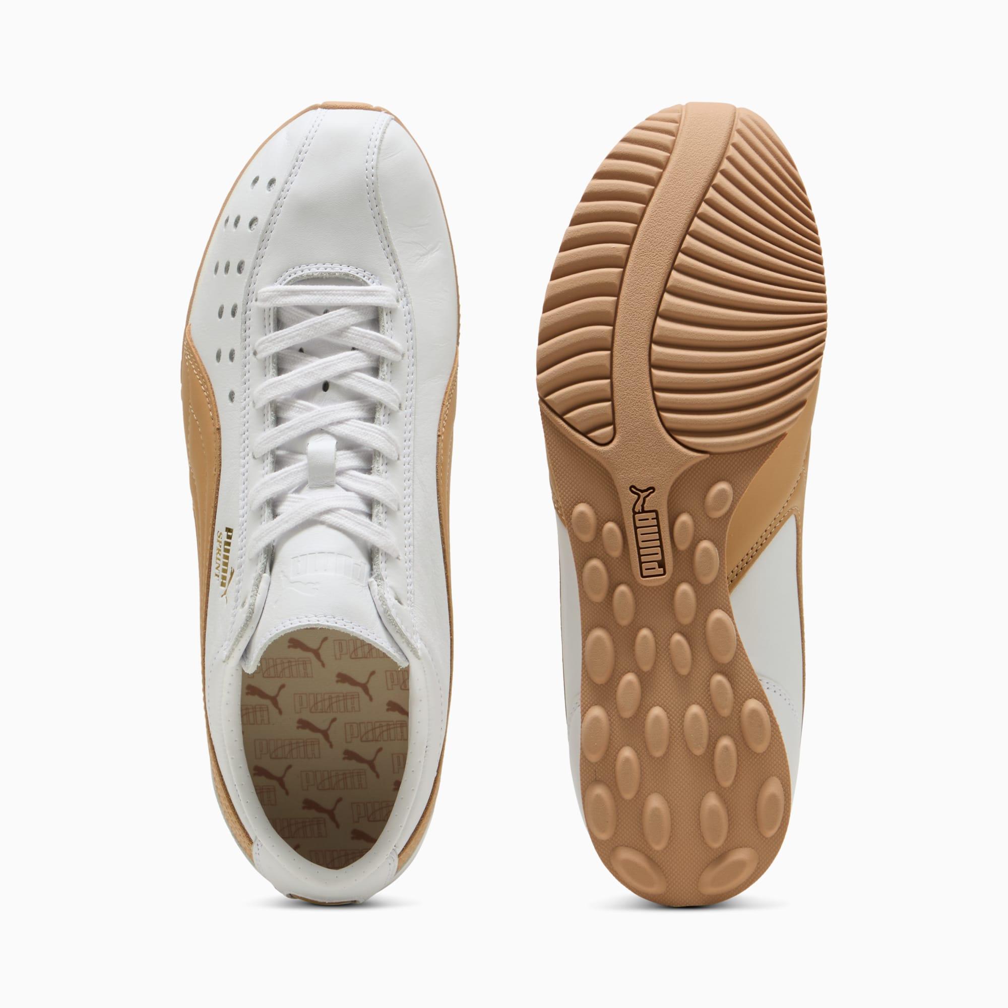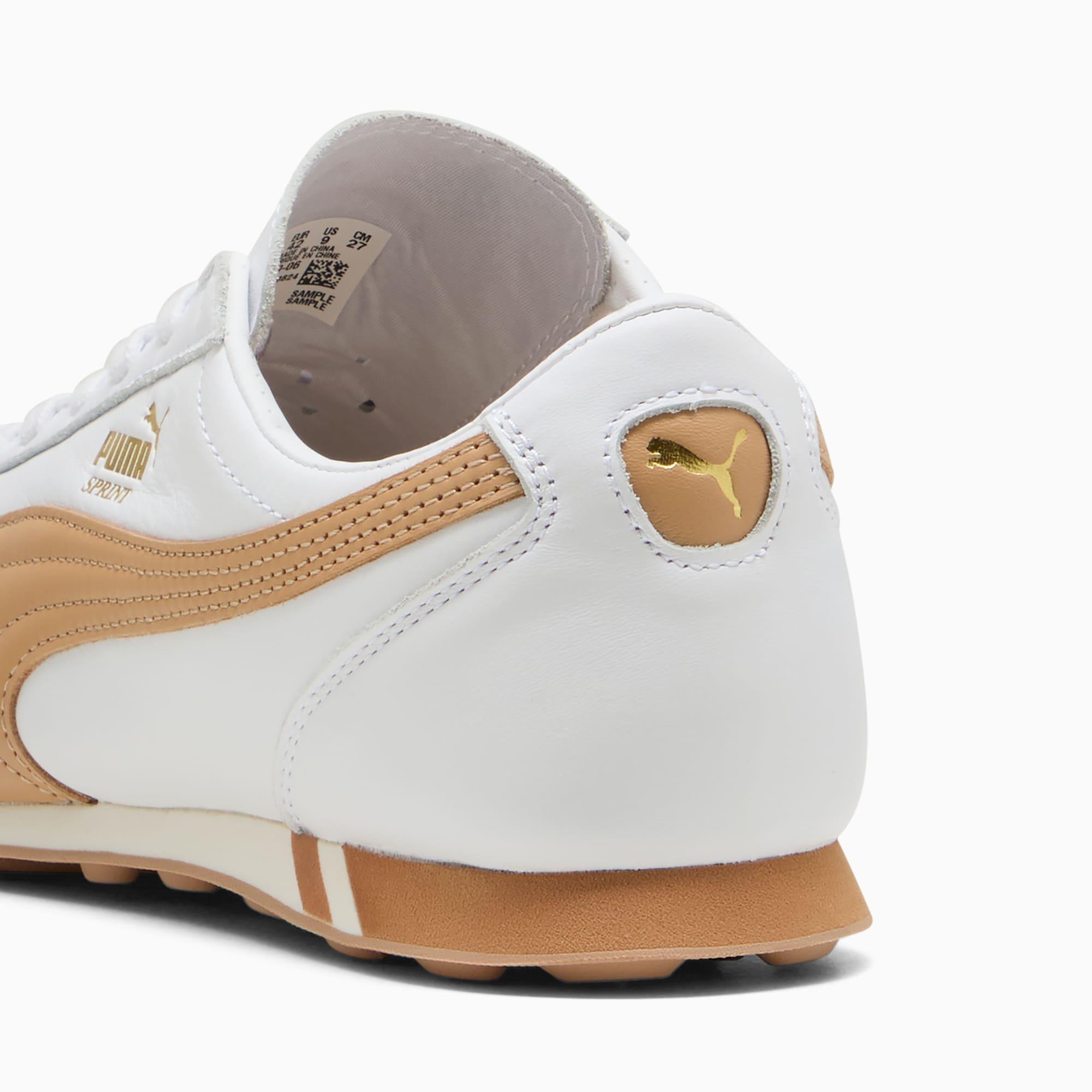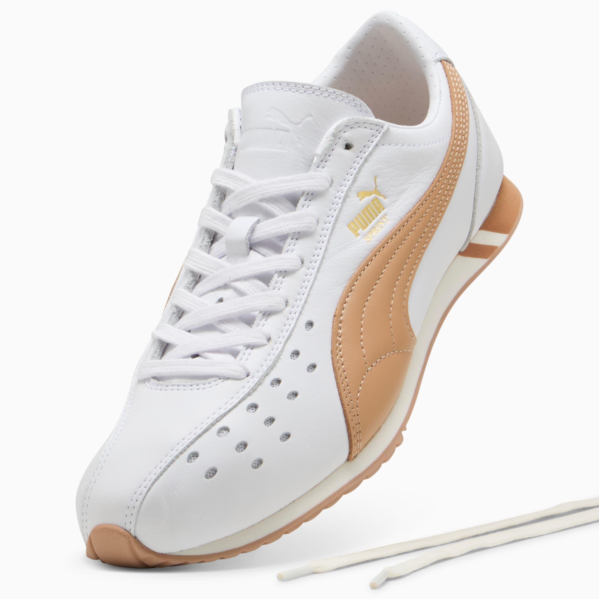 descriptionThe PUMA Sprint was born in the 2000s as a running shoe and hasn't slowed down since. Today we're bringing this running icon out of the archives and into the streets.Style: 402960_06Color: PUMA White-PuttydetailsWidth: RegularToe Type: RoundedFastener: LacesHeel type: FlatMoulded footbedmaterials & careMaterial informationMidsole: 100% SyntheticSockliner: 100% TextileOutsole: 100% RubberUpper: 98.22% Leather - cow, 1.78% SyntheticLining: 100% Synthetic