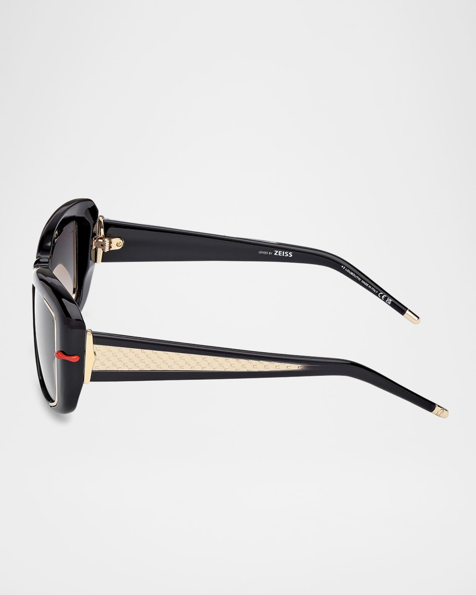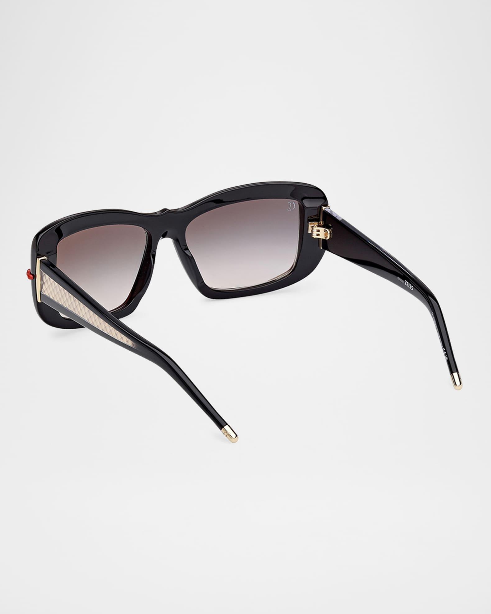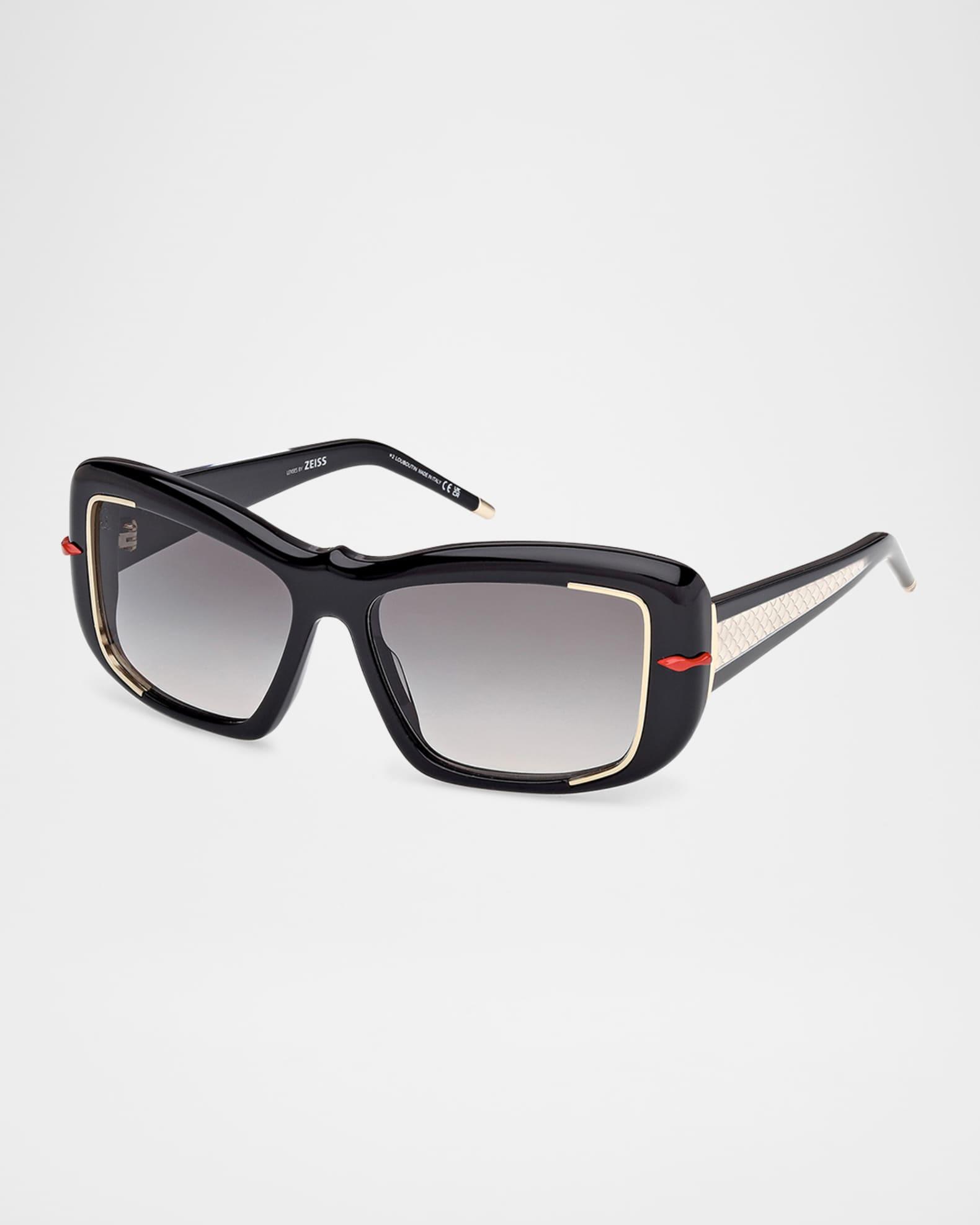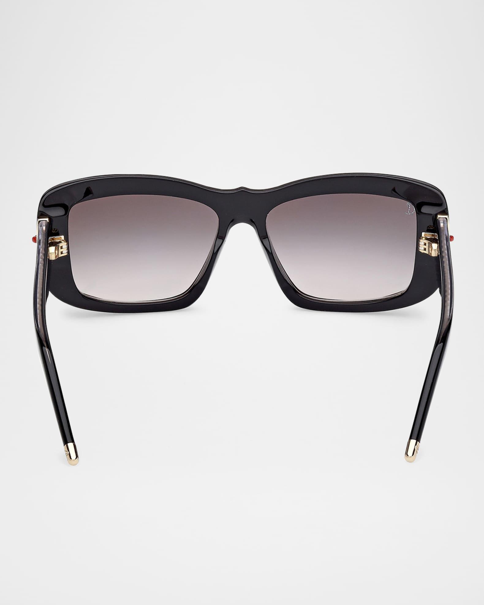 Christian Louboutin square sunglasses in acetate Eye/bridge/temple (in mm): 56-15-135 Gradient lenses Saddle nose bridge Thick, tapered arms Logo at lens Red details at frames Acetate Spot clean 100% UVA/UVB protection Made in Italy Proposition 65 warning for California residents