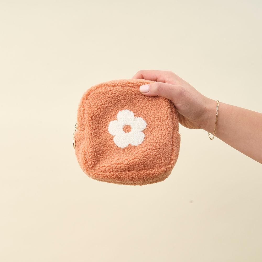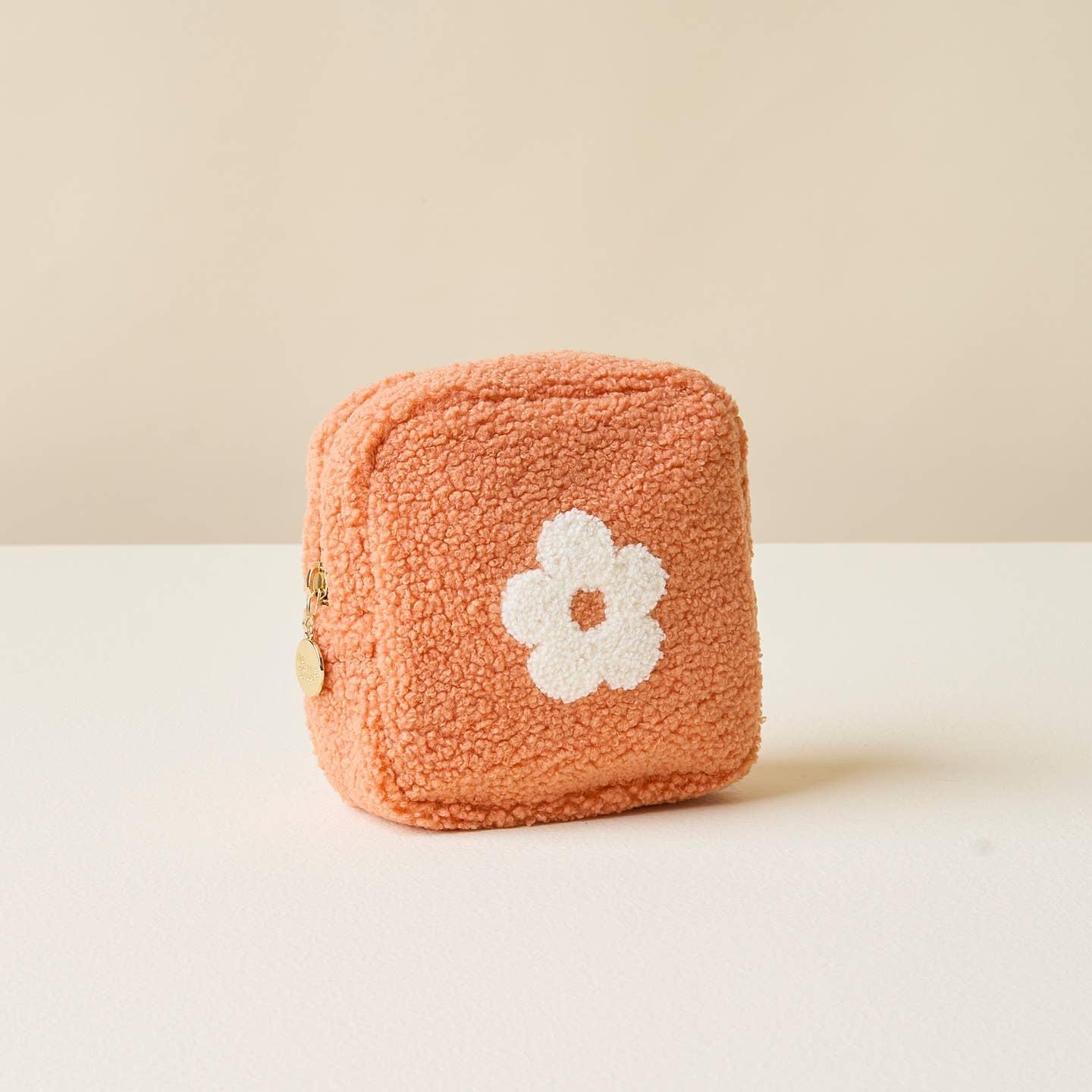 Indulge in the soft, luxurious sherpa fabric that lines this pouch. With a wipeable interior and stylish gold zipper and hardware, it's both functional and fashionable. The contrasting interior print adds a charming touch to the rectangular and square sizes available, making them perfect for any occasion.