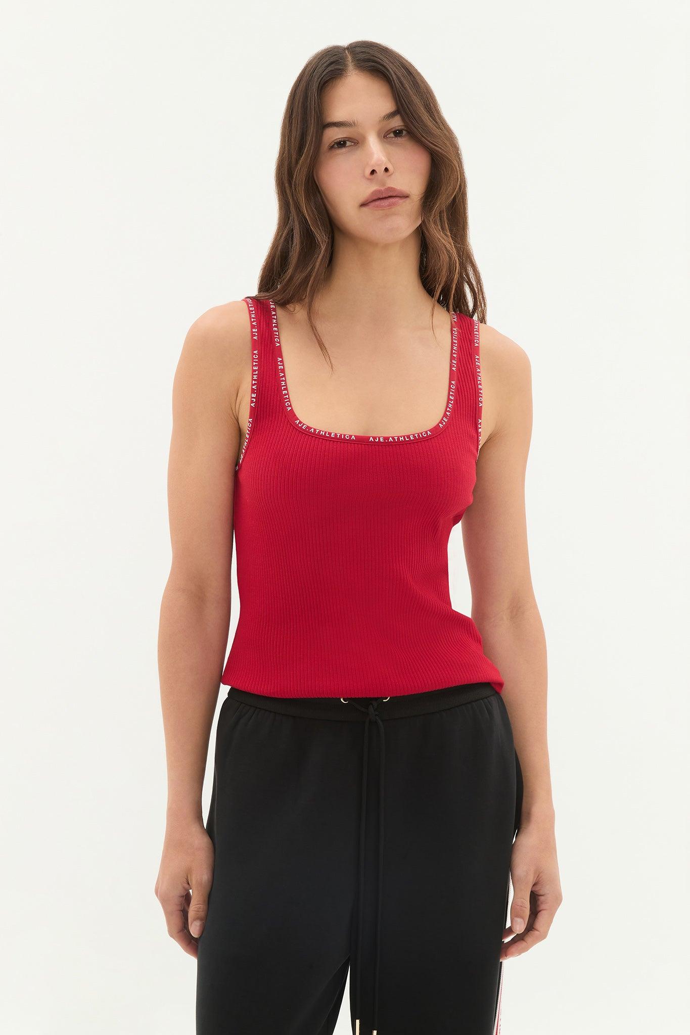 PRODUCT DETAILS Aje Athletica Women's tank Ribbed fabrication Square neck Logo bind detail 58% Organic Cotton, 38% Viscose, 4% Elastane SIZE & FIT Model wea...