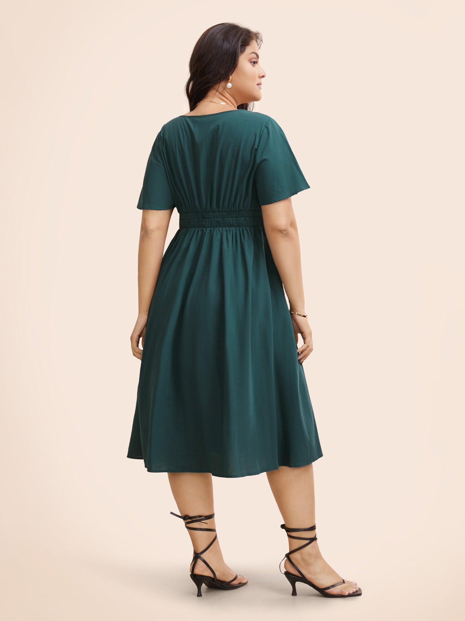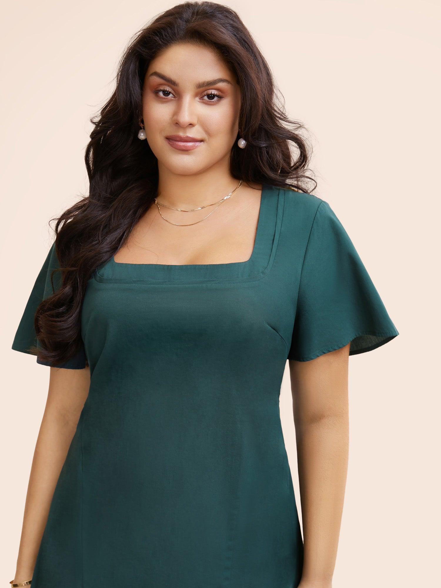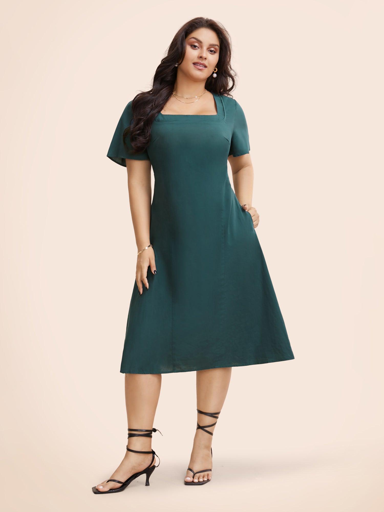 Shop Square Neck Ruffle Sleeve Shirred Dress now and redefine your style with confidence at BloomChic. Tailored for mid and plus-size women. This trendy Dress, sizes 10-30. You can never go wrong with BloomChic Dresses. Season:Fall;Color:ArmyGreen;Style:Elegant;Neckline:Square Neck;Sleeve Type:Ruffle Sleeve;Prints:Non;Details:Shirred;Pocket:Side seam pocket;Belt:No-belt;Closure Type:Non