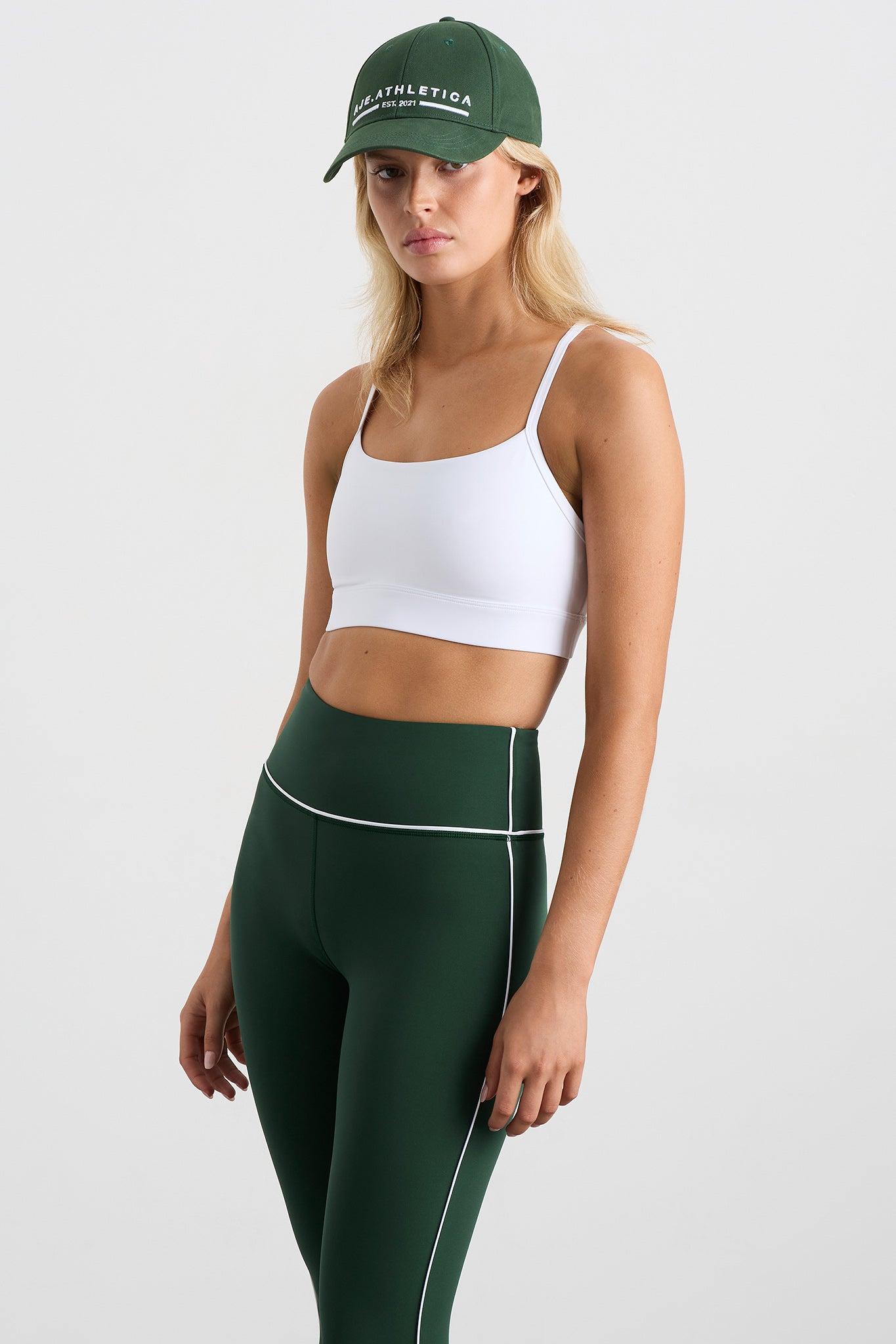 PRODUCT DETAILS Low support sports bra Square neckline Three-layer design Adjustable straps Elasticated hem band Removable bra cups Hook back strap closure Four-way stretch for freedom of movement Moisture-wicking properties Machine washable SIZE AND FIT Molly wears a size 8/S and is 173cm/5'8 in height Shimma wears a size 12/L and is 175cm/5'9 in height Paris wears a size 16/XXL and is 177cm/5'10 in height FABRICATION 75% Recycled Nylon 25% Elastane