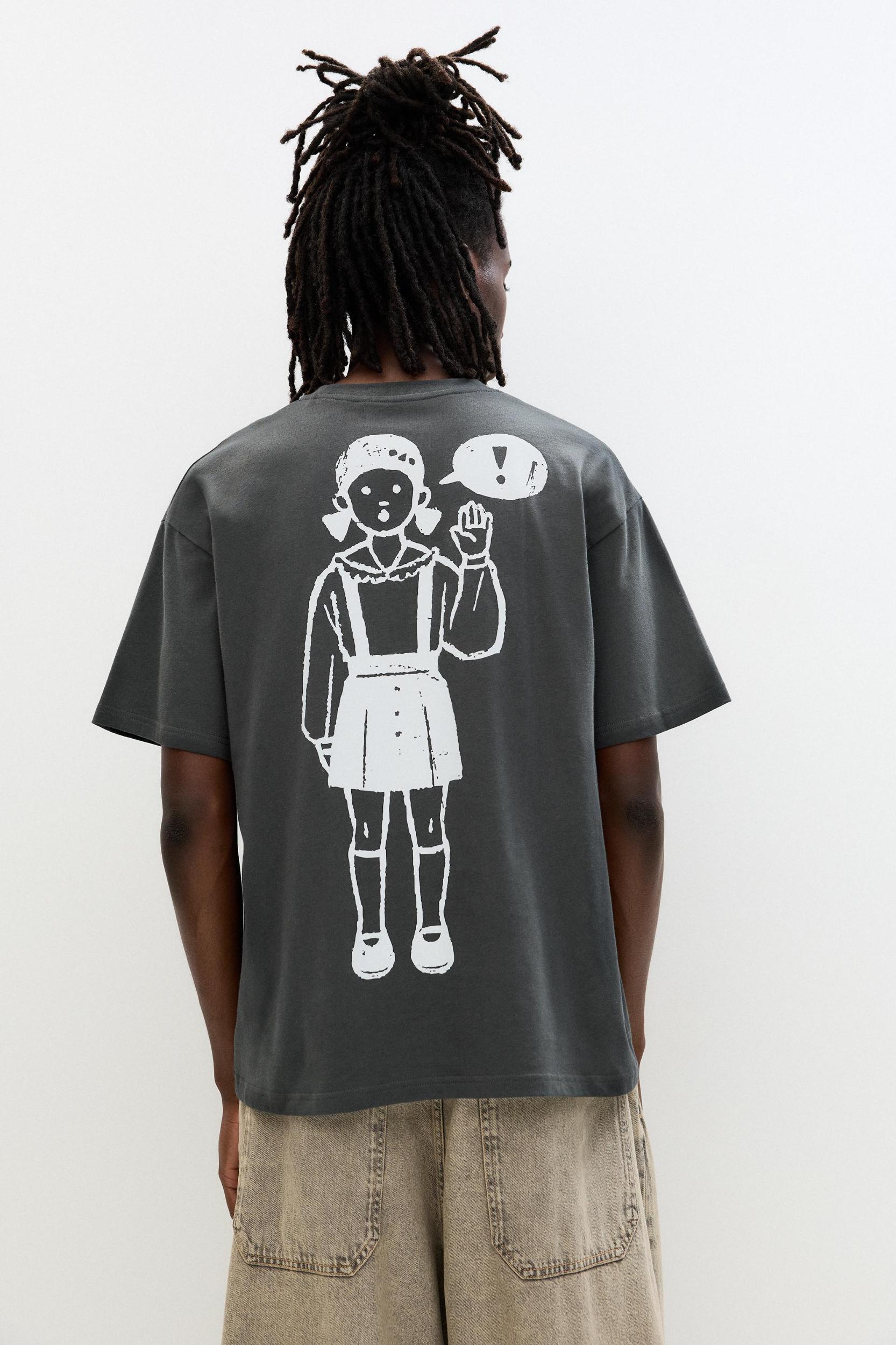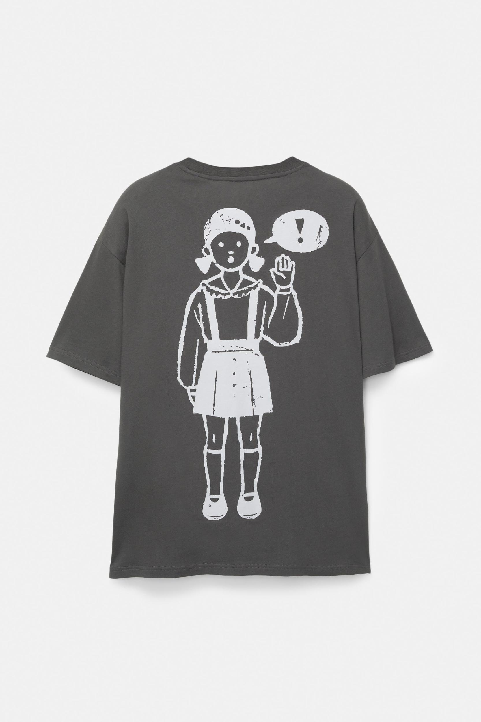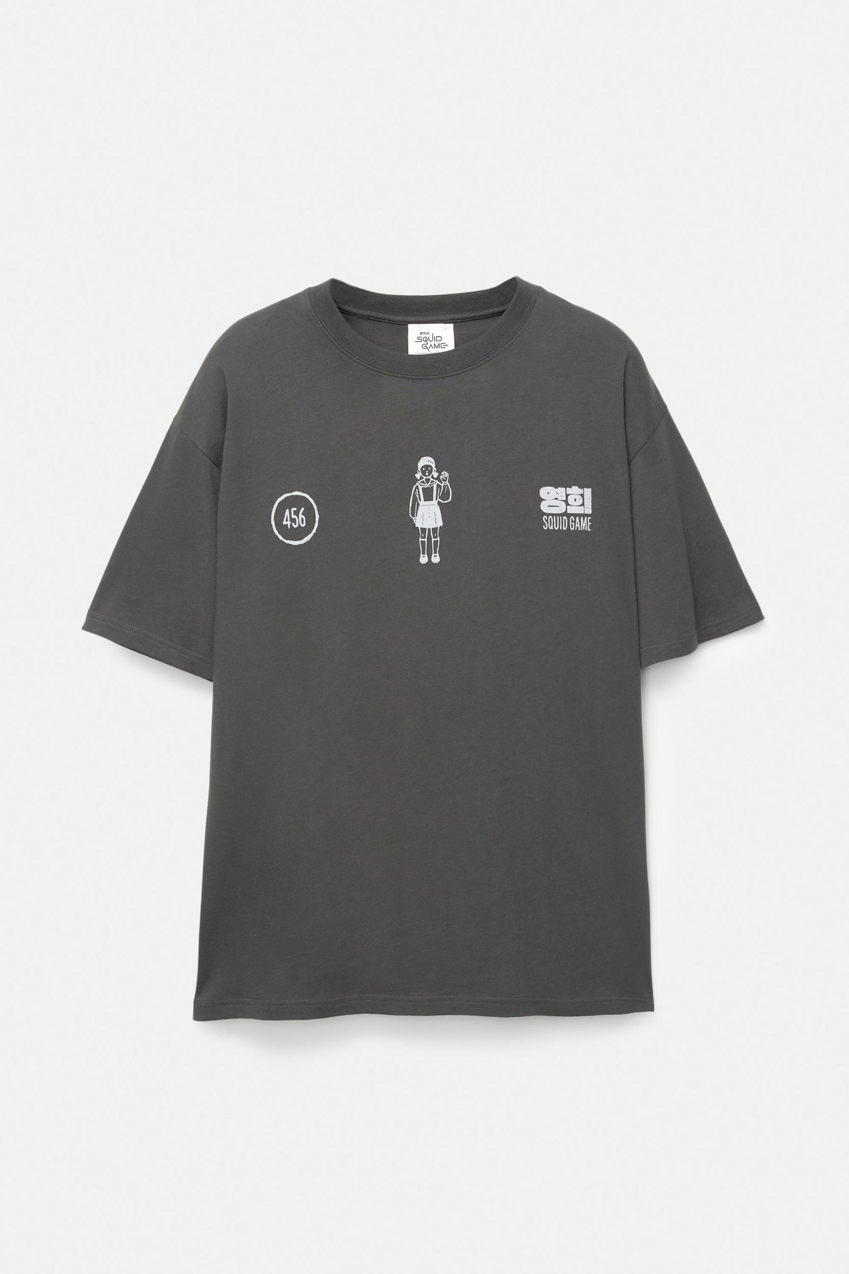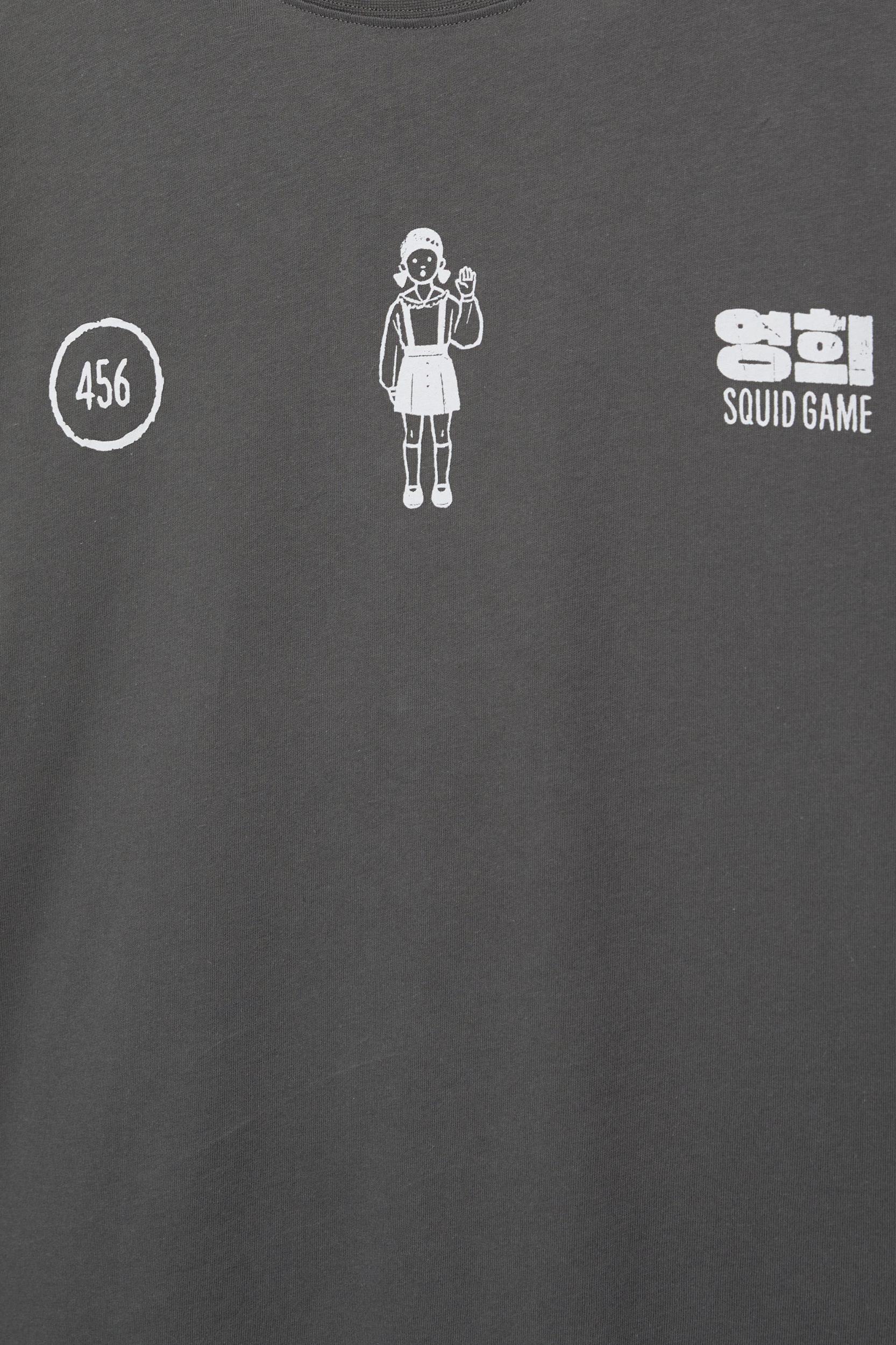 The Squid Game license T-shirt with a contrast doll graphic on the front and back, a round neckline and short sleeves. Made of 100% cotton.