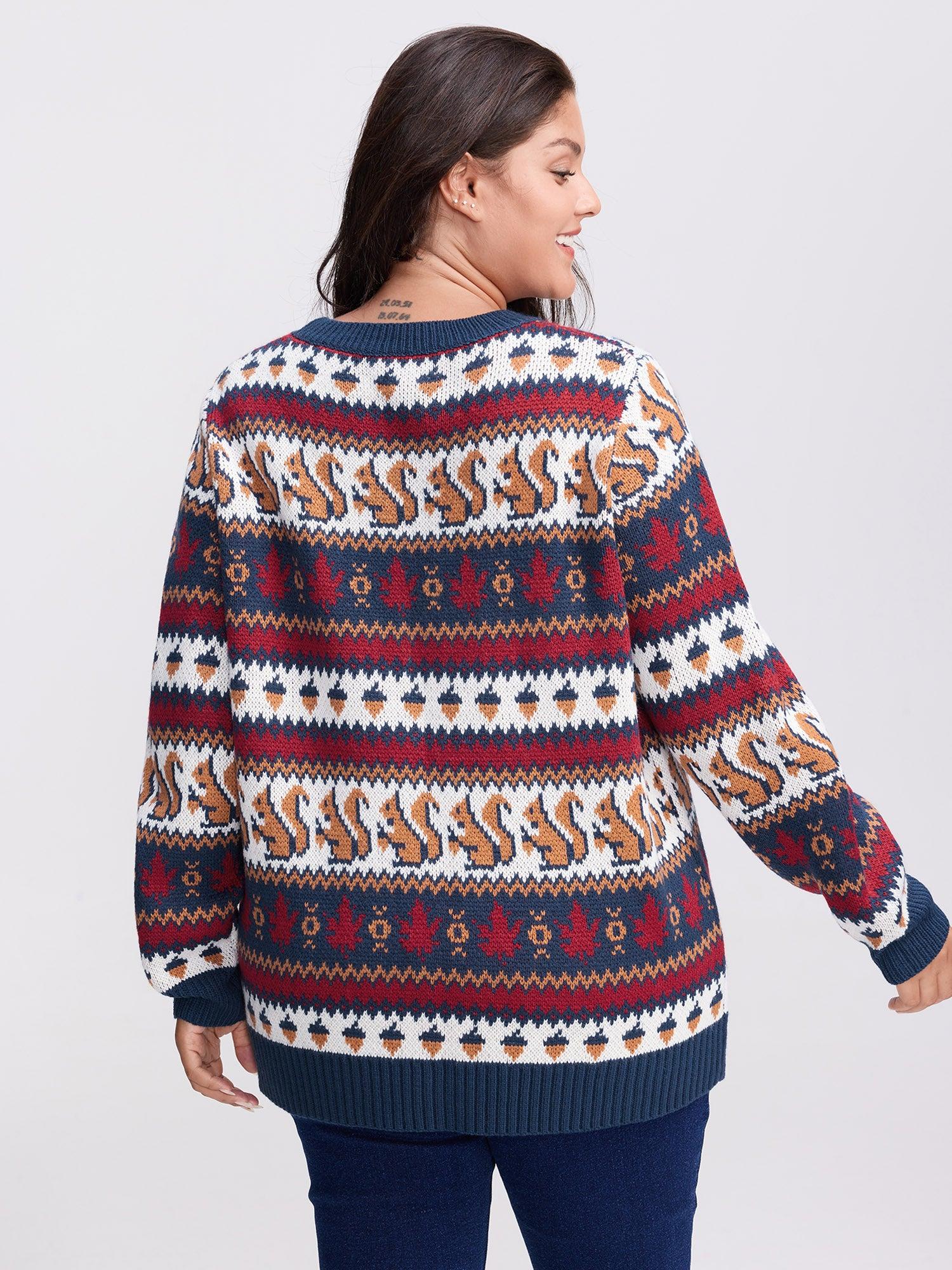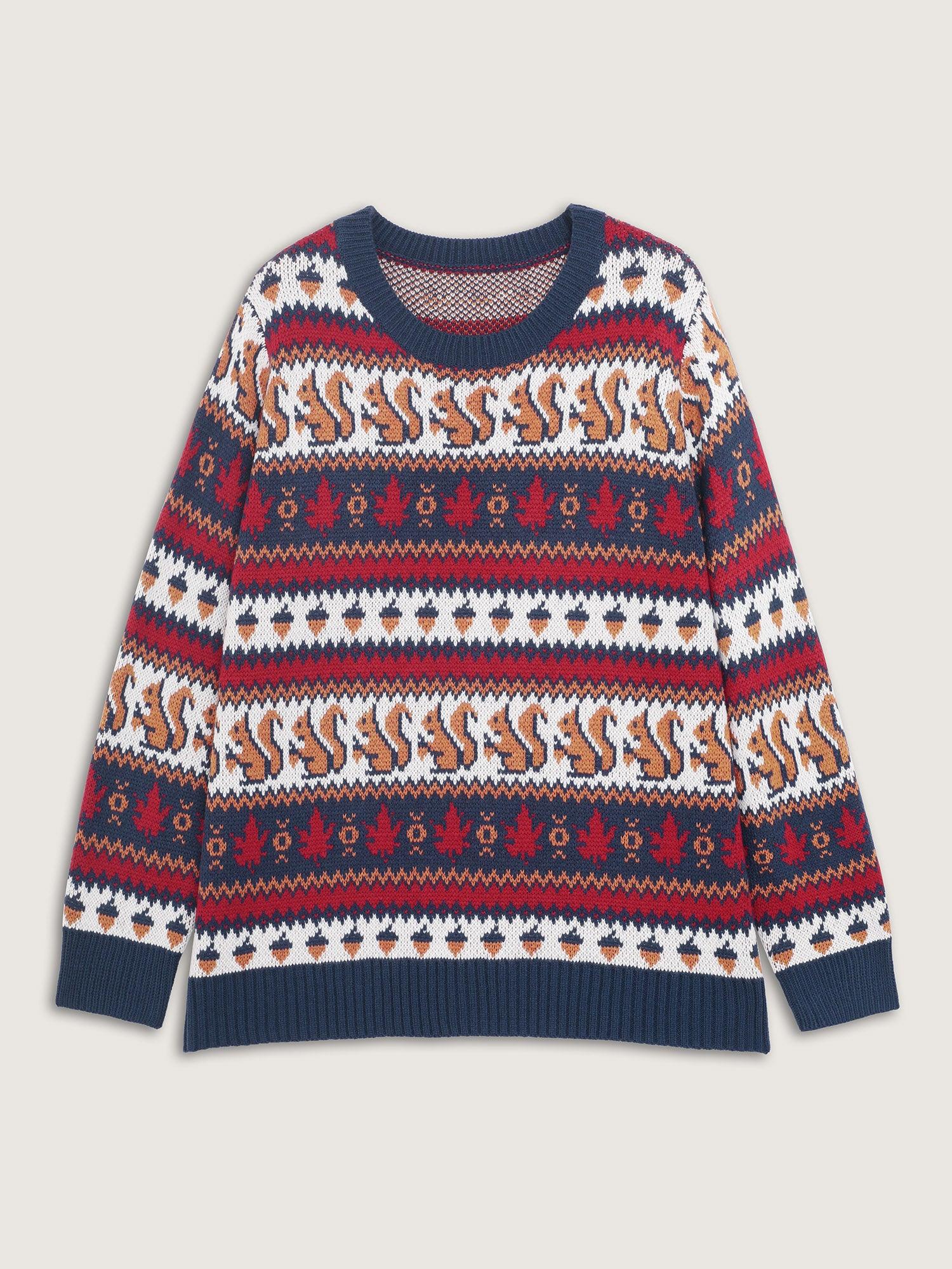 Squirrel Fall Print Jacquard Pullover Female