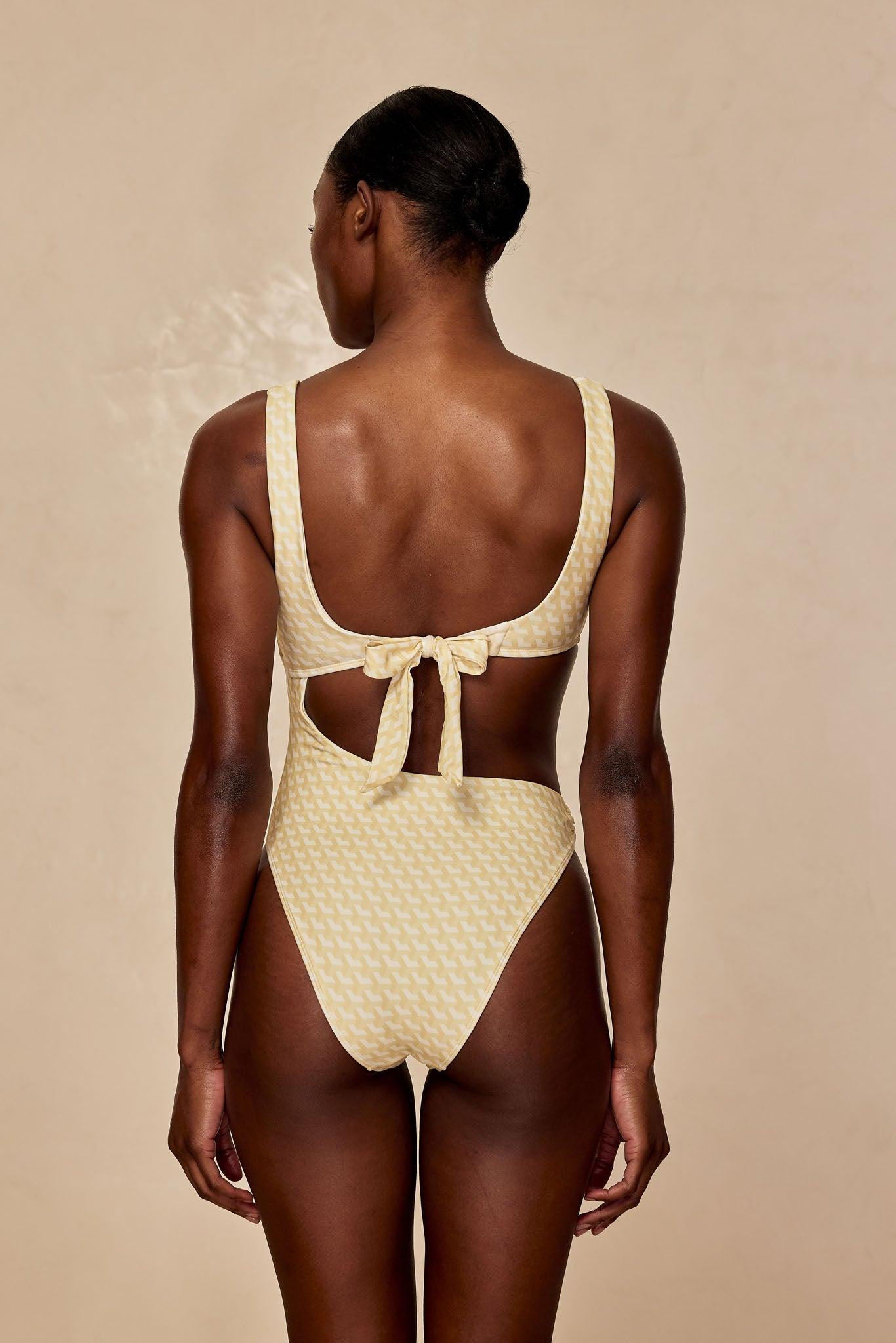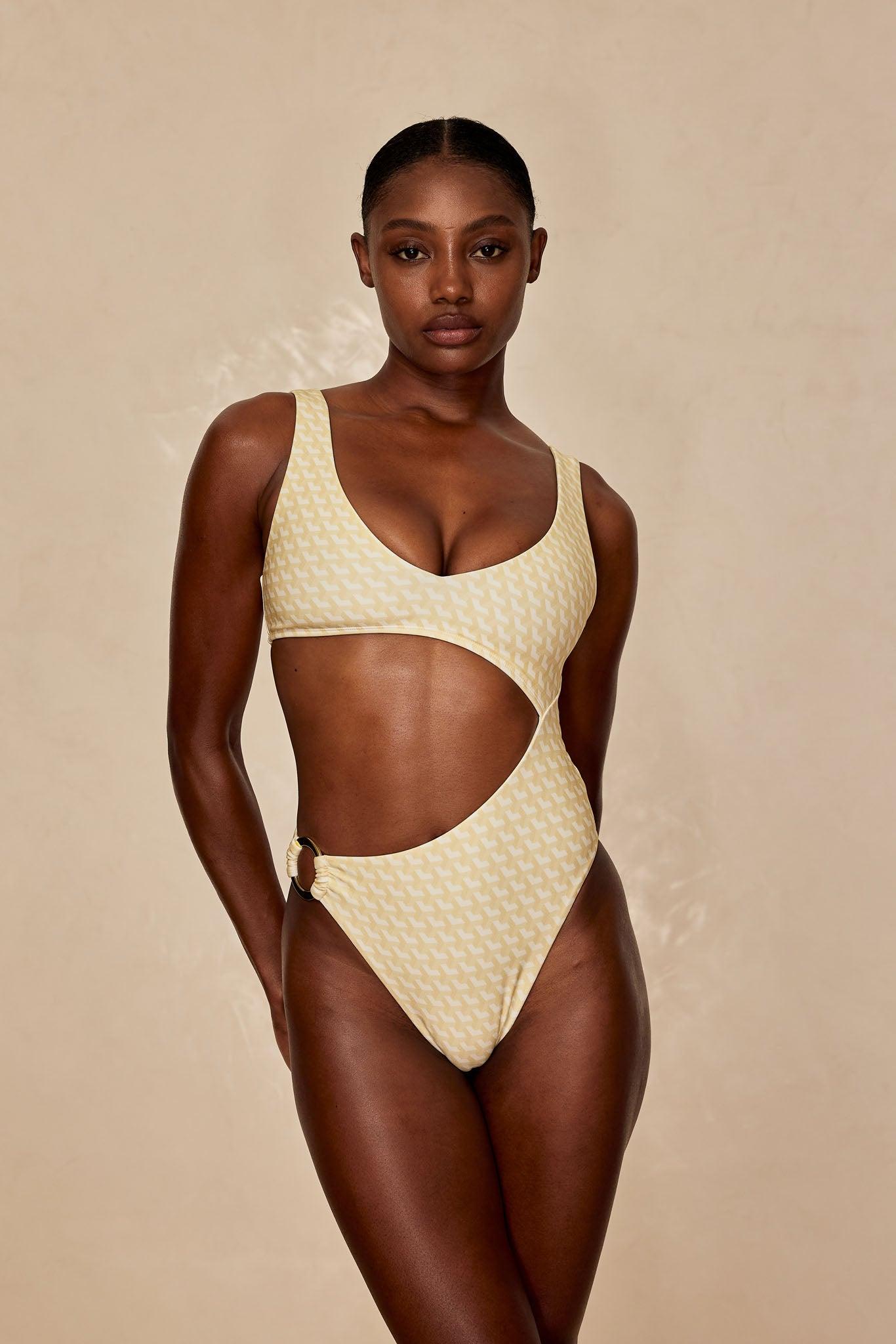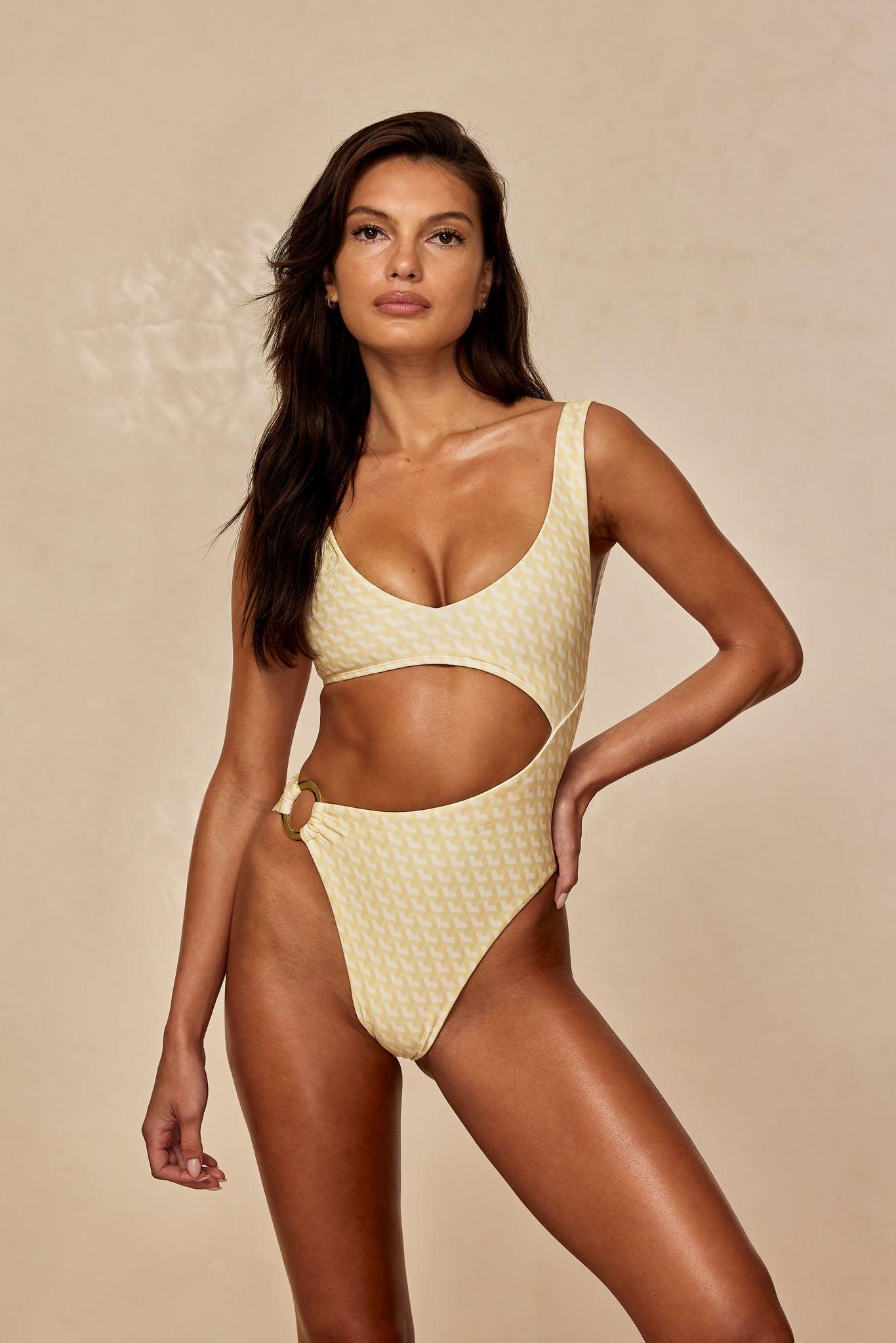 Irresistible We can't take our eyes off the St. Barth's One Piece. From the sultry cut-out detail to the flattering silhouette, this must-have one piece is made to show off your figure. Complete with a rounded v-neckline, adjustable back tie closure and a gold ring detail. All eyes on you!Features:Rounded v-necklineAdjustable back tieHigh cut legChunky gold ring detail Cheeky coverage CF Length (Center Front Length)P: 12.37"S: 12.75"M: 13.12"L: 13.5"V: 16.37" CB Length (Center Back Length)P: 10.87"S: 11.25"M: 11.62"L: 12"V: 11.37"Care:Hand wash cold. Lay flat to dry indoors.Click here for our care tips.