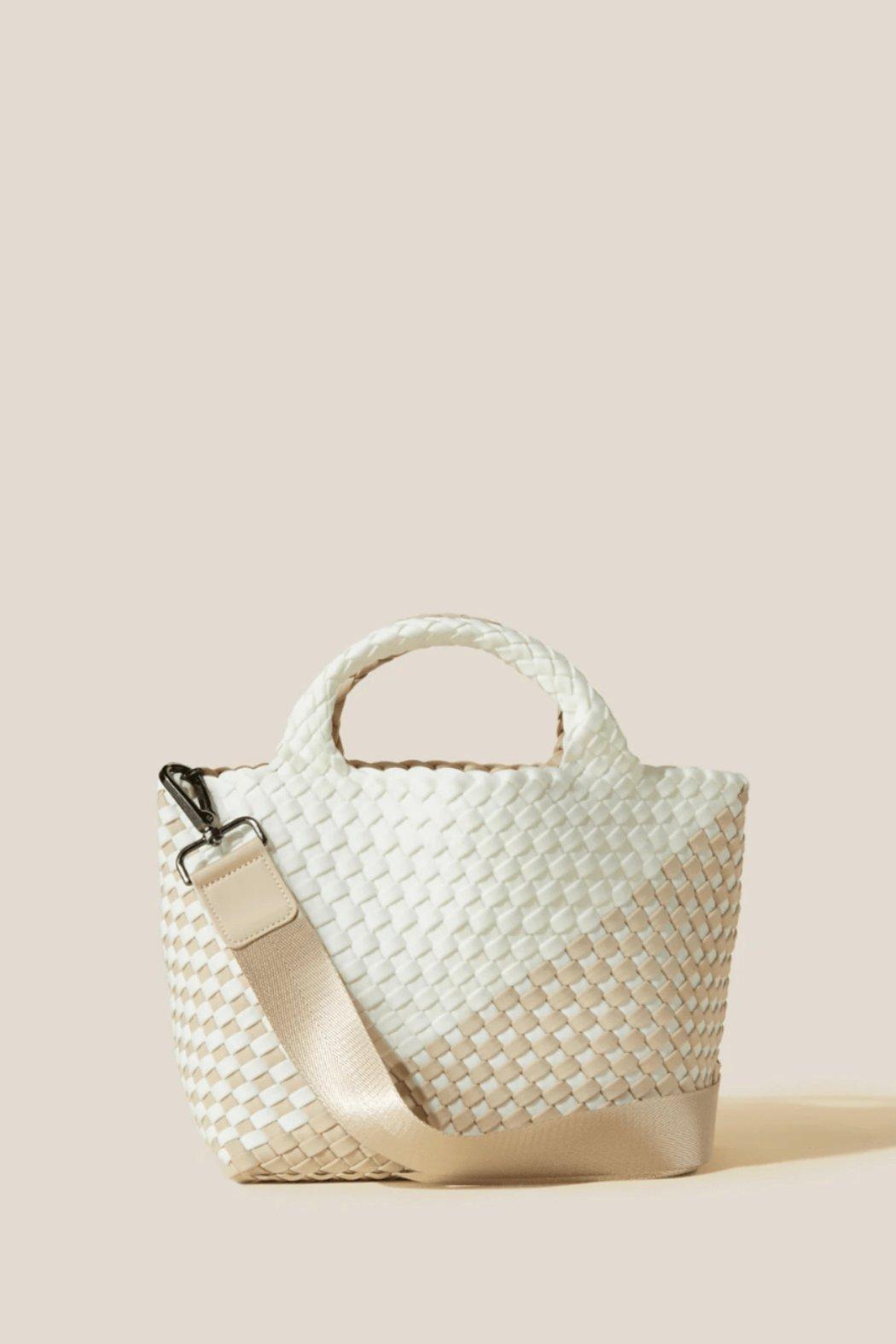 Handwoven neoprene in Ecru and white Perfect for carrying all day, the St. Barths Small Tote is the bag you'll reach for every morning.