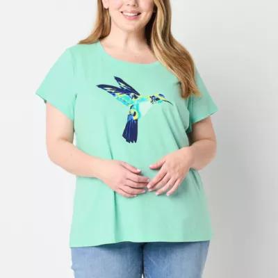 St. John's Bay Womens Plus Crew Neck Short Sleeve T-Shirt