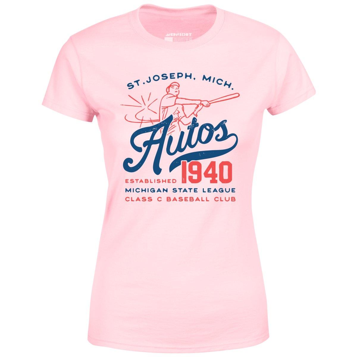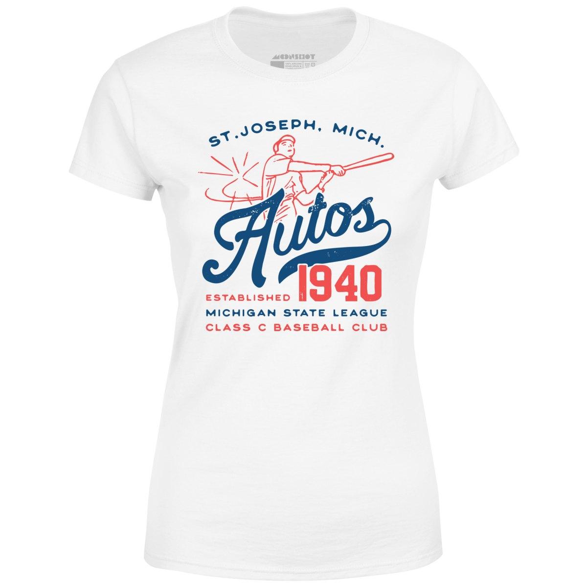 The St. Joseph Autos were an old school baseball team based in St. Joseph, Michigan. They were established in 1940 and played Class C baseball in the Michigan State League. This design is part of our old school retro baseball designs inspired by the vintage and now defunct Minor League Baseball teams of yesteryear. Original branding reimagined by m00nshot for the lost baseball teams of yesteryear for which mostly nothing exists. Printed on our super soft 100% ringspun & combed cotton women's T-Shirt. Or upgrade to our Luxury 52/48 cotton/poly vintage heather edition for an even softer classic look. We print & ship all of our high quality graphic tees in the USA.