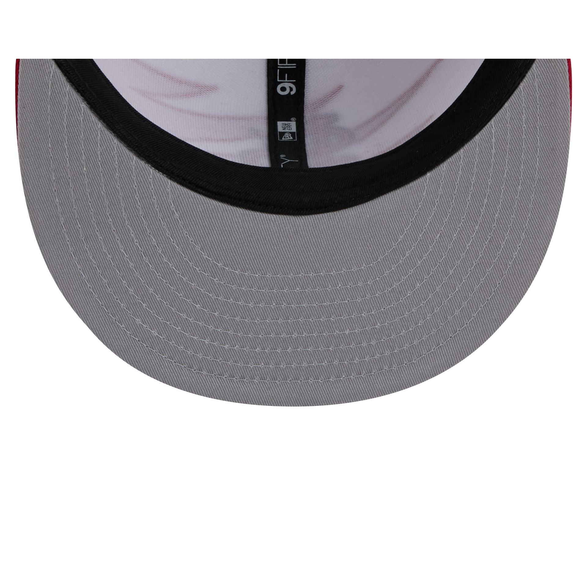 The St. Louis Cardinals Jagged 9FIFTY Snapback features an embroidered Cardinals logo at the front panels with a jagged pattern fabrication throughout the cap. Additional details include a snapback closure at the rear and a gray undervisor.
