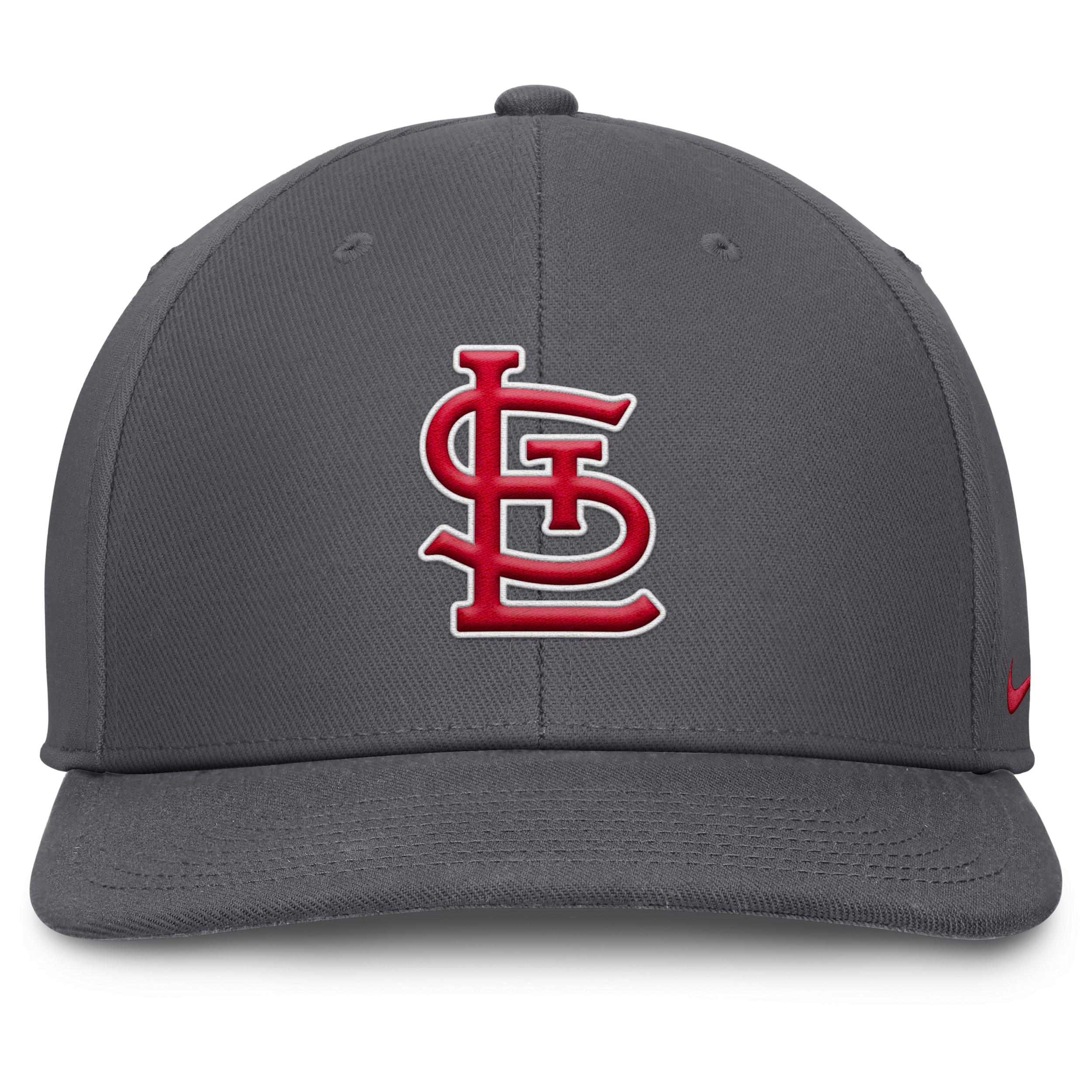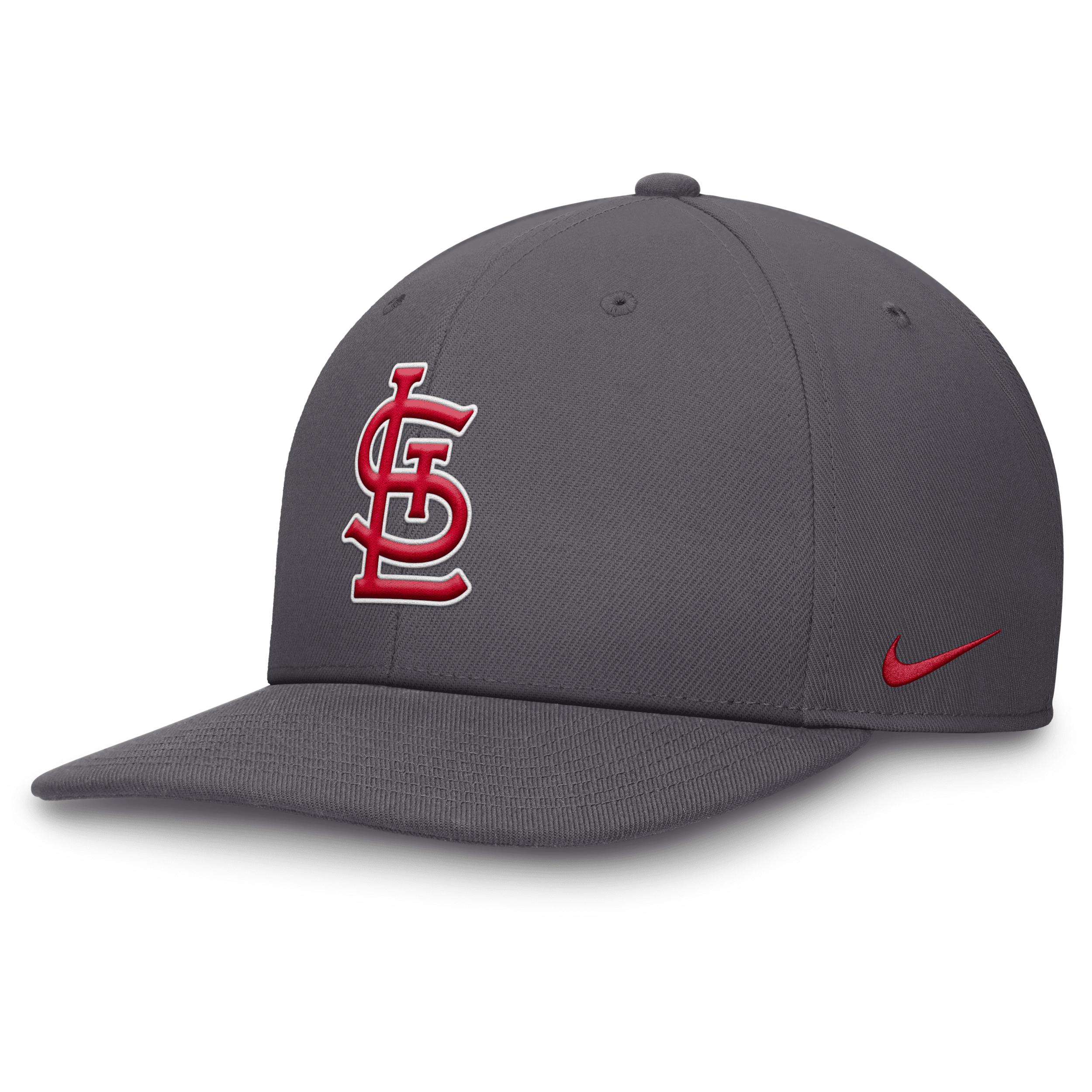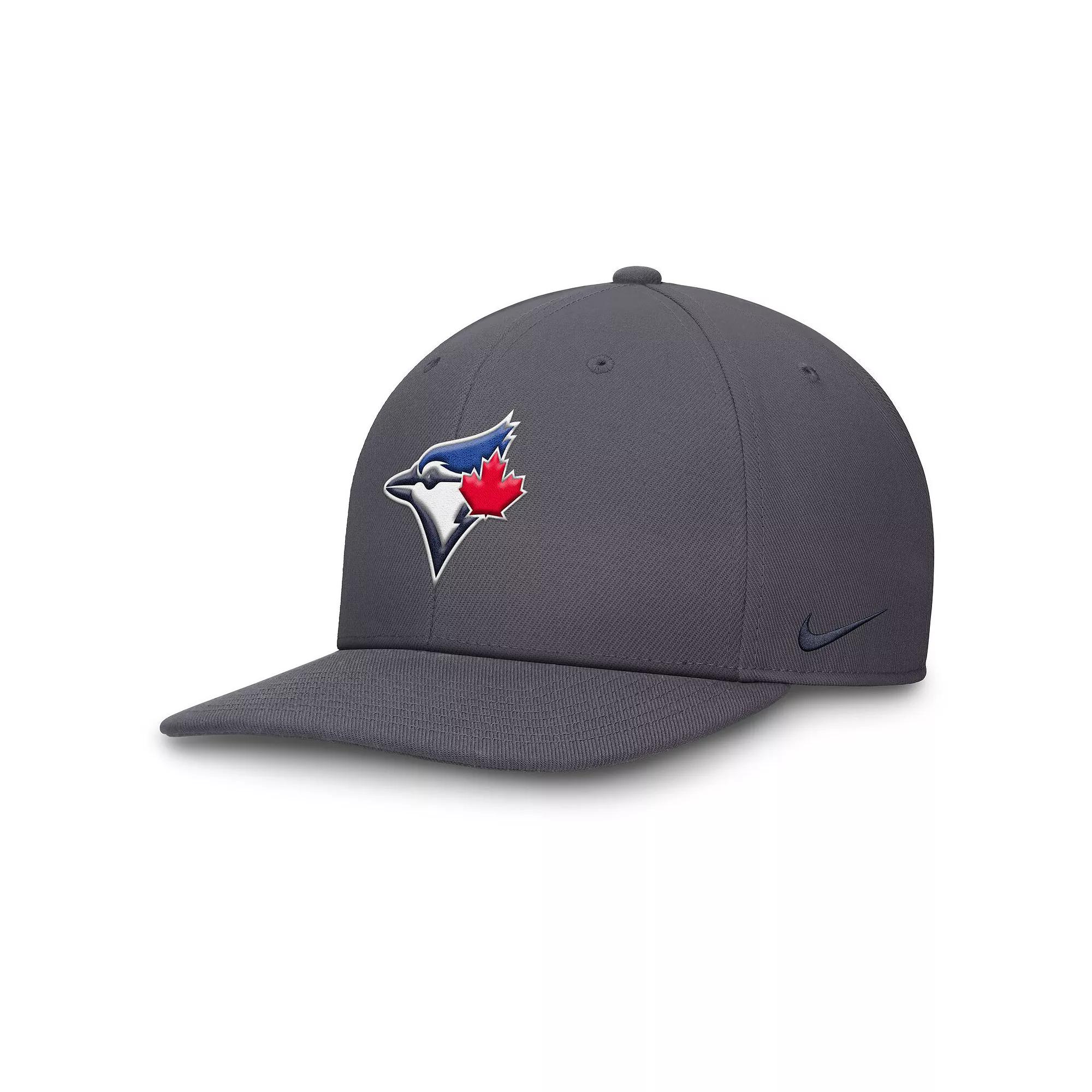 Featuring a flat bill and high crown, this Statement Pro Hat helps you display support for the Toronto Blue Jays with a 2-tone design and embroidered team logo. Its sweat-wicking technology and snapback closure help provide a breathable, comfortable feel. Benefits:Nike Dri-FIT technology moves sweat away from your skin for quicker evaporation, helping you stay dry and comfortable. Snapback closure provides a customizable fit. Product Details:6-panel design. Embroidered eyelets. 100% polyester. Hand wash. Imported. Style: NB1300CTOR; Color: Grey; Size: One Size; Gender: Male; Age Group: Adult | Toronto Blue Jays Pro Men's Nike Dri-FIT MLB Adjustable Hat in Grey, Size: One Size | NB1300CTOR-8KY