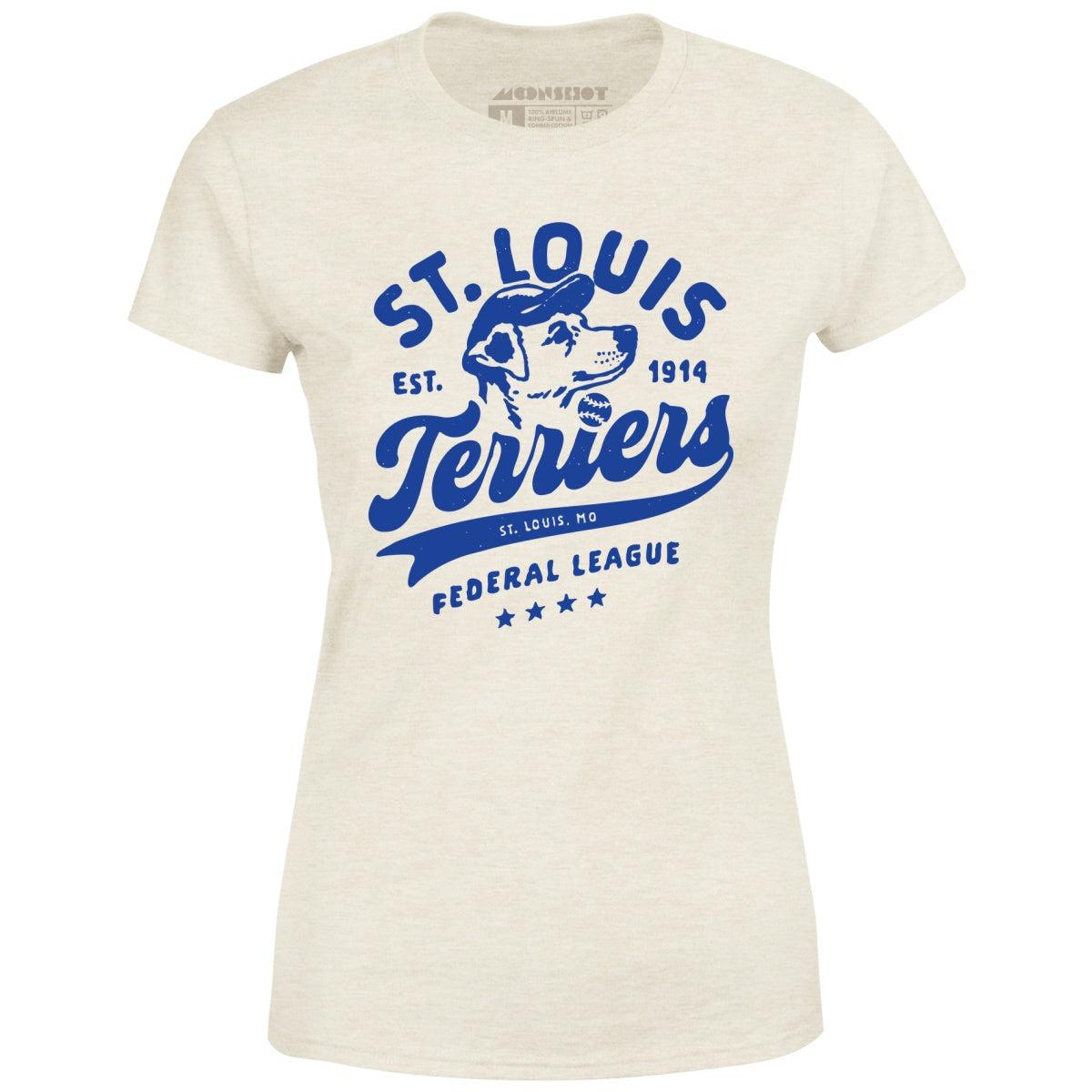 Before the majors took over the spotlight, the St. Louis Terriers made their mark in the short-lived but scrappy Federal League. Active from 1914 to 1915, the Terriers played hardball with the big boys, even finishing just a whisper away from first place in their final season. Though the league folded fast, their legacy lives on in box scores, old ballparks, and now, this classic throwback design. This design is part of our old school retro baseball tees inspired by the vintage and now defunct Minor League Baseball teams of yesteryear. Printed on our super soft 100% ringspun & combed cotton women's T-Shirt. Or upgrade to our Luxury 52/48 cotton/poly vintage heather edition for an even softer classic look. We print & ship all of our high quality graphic tees in the USA.