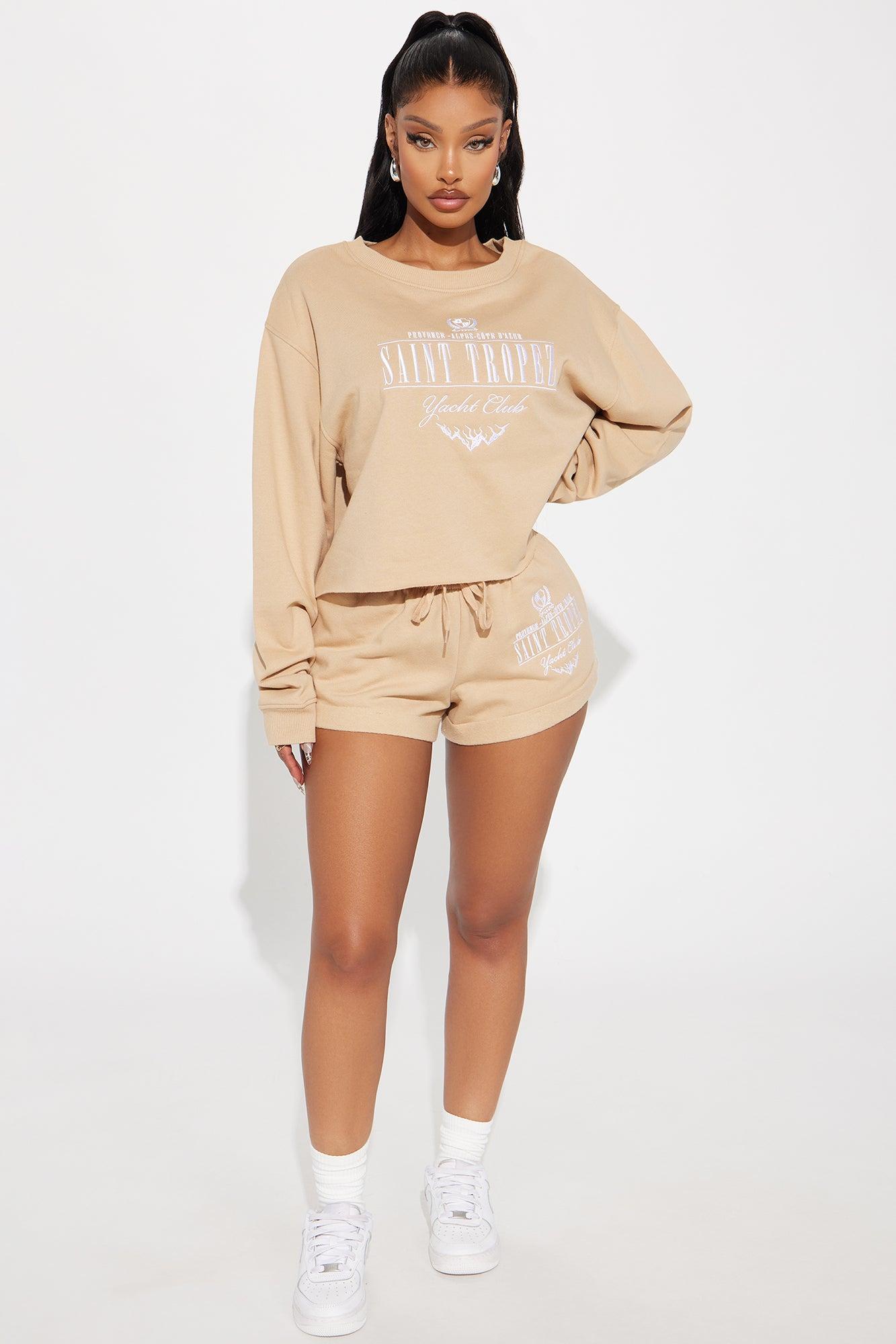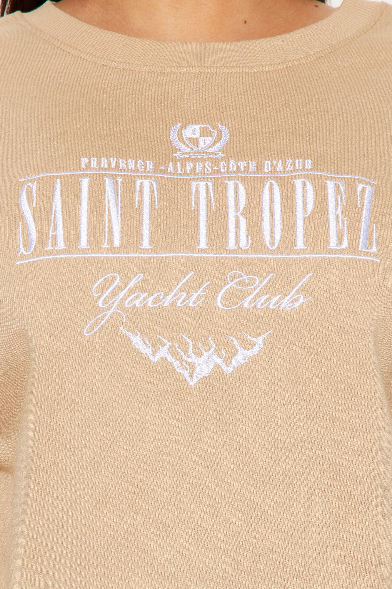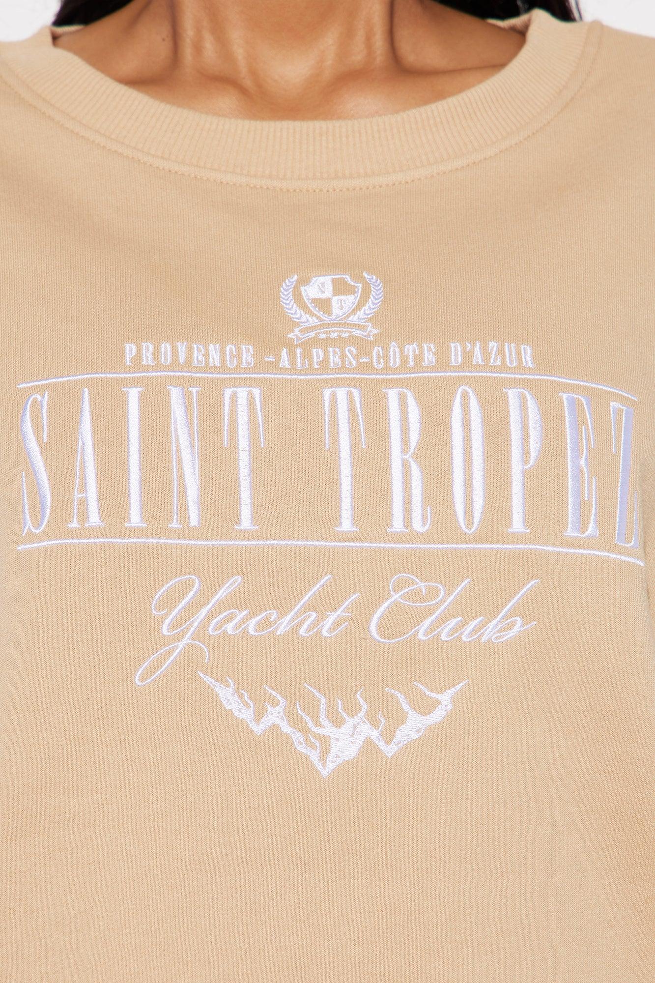 Available In Navy. Embroidered "St. Tropez" Verbiage Cropped Raw Hem Long Sleeve Crew Neck Paid Back To "St. Tropez Embroidered Shorts" Disclaimer: Due To The Print & Embroidery Placement , Each Garment Is Unique. 60% Cotton 40% Polyester Imported