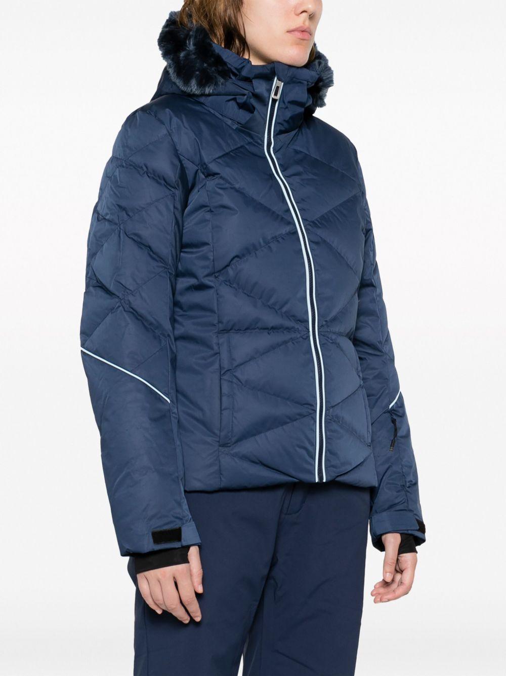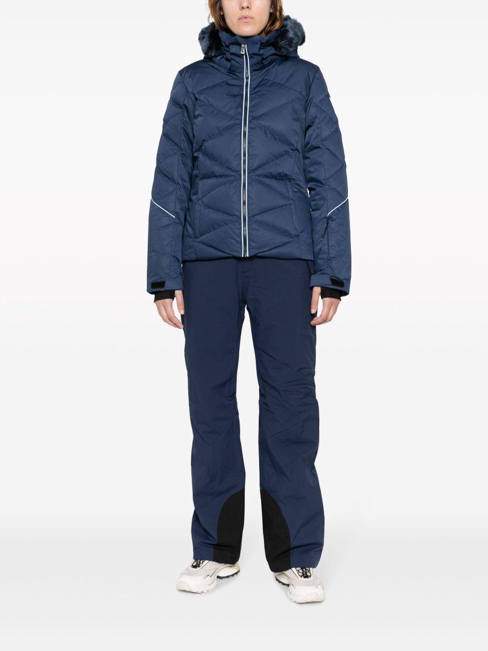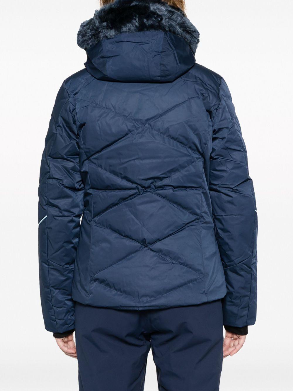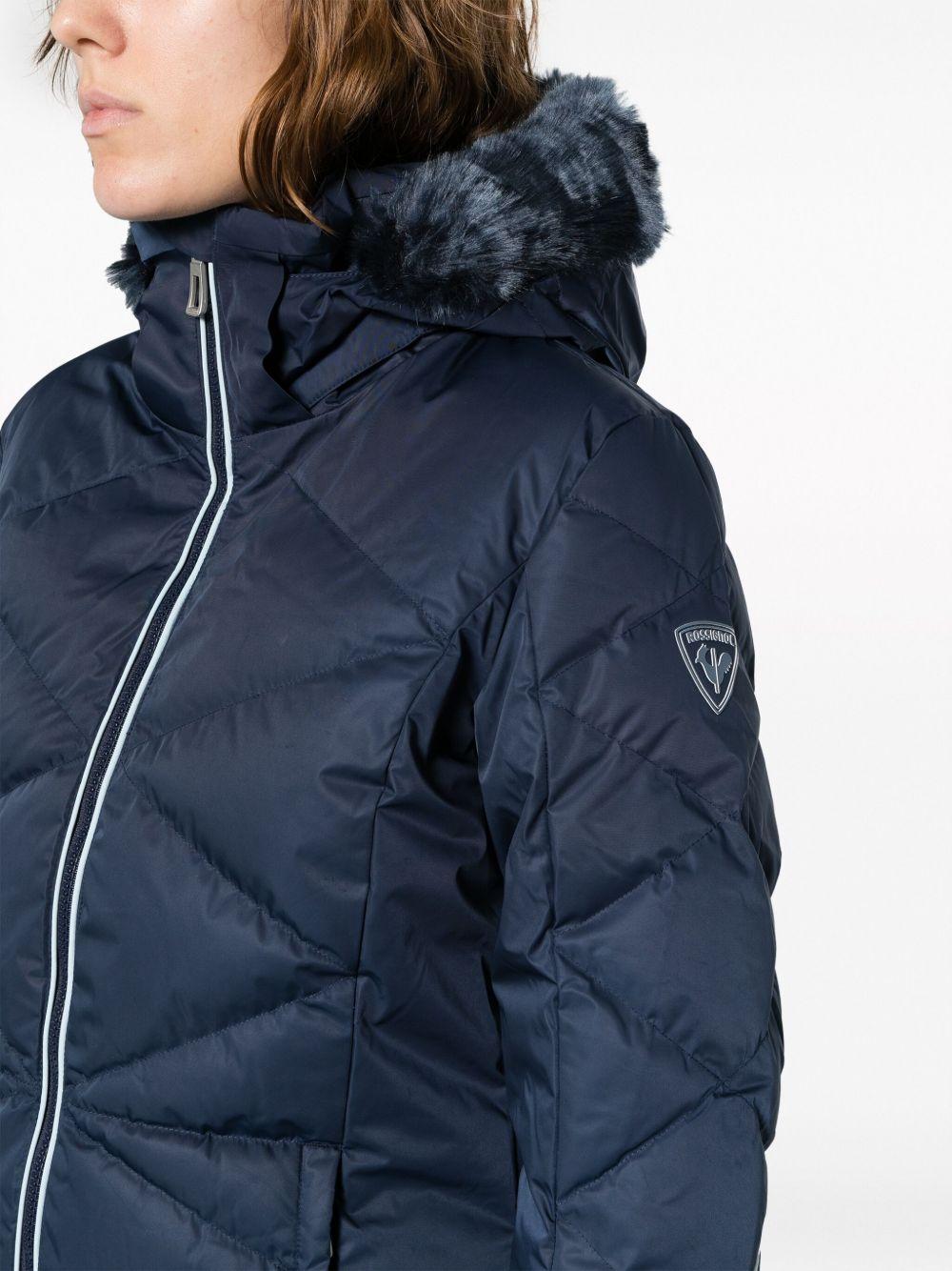 Rossignol Staci Pearly ski jacket | Blue | navy blue | insulated design | quilted | logo print at the sleeve | faux fur-trimmed hood | detachable hood | front zip fastening | two side zip-fastening pockets | long sleeves | touch-strap cuffs | thumb slots | straight hem | Acrylic/Polyester/Polyester | Ski Jackets | Skiwear | Activewear | Women