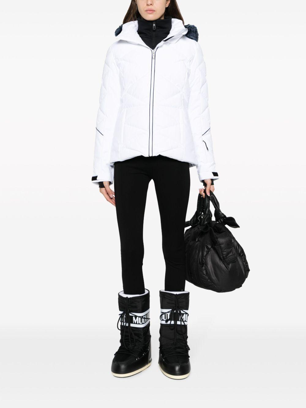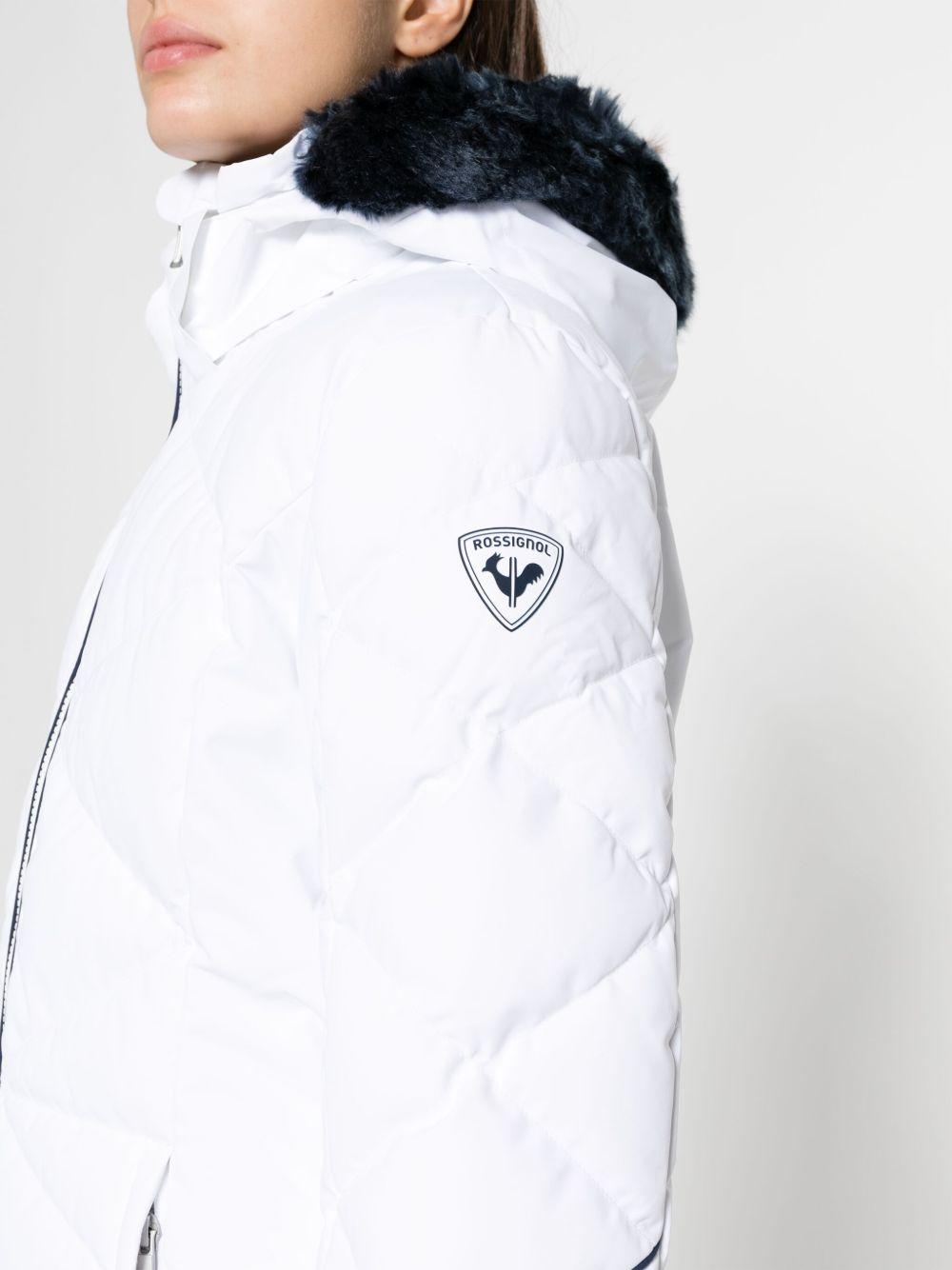Rossignol Staci ski jacket | White | optical white | black | padded design | diamond-quilted detailing | logo patch at the sleeve | faux fur-trimmed hood | high neck | front zip fastening | long sleeves | touch-strap cuffs | sleeve zip pocket | two side welt pockets | straight hem | Polyester/Acrylic/Polyester | Down Jackets | Jackets | Clothing | Women