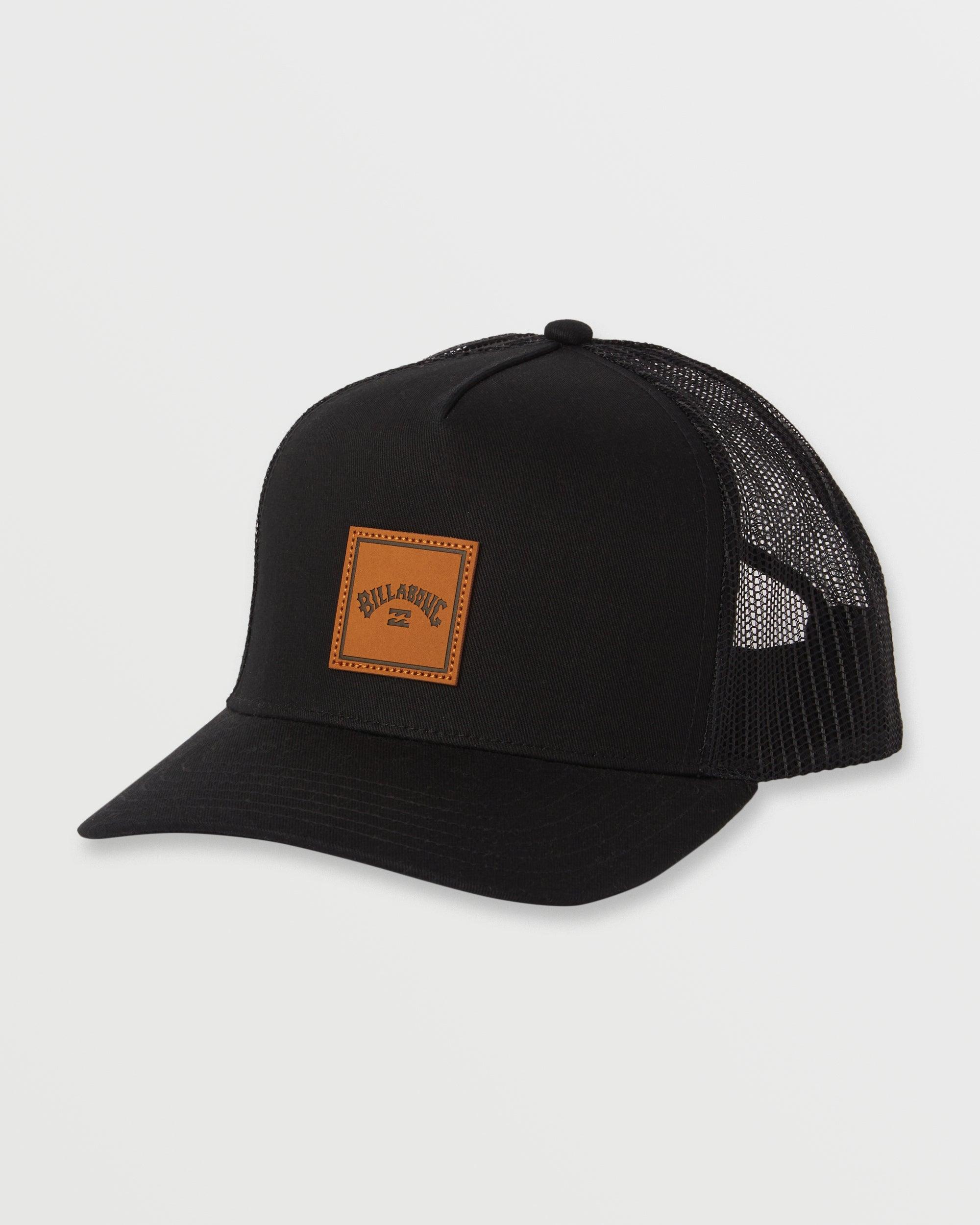The perfect hat for your weekend adventures. The poly-cotton twill fabric, 5-panel construction, and curved visor give the Stacked trucker a classic look that's ready for anything. Featured here in the Black colorway.Features Fabric: Polyester cotton blend twill fabric Construction: 5-panel construction Visor: Semi curve bill Closure: Snapback closure Branding: Print and embroidered Print patch or embossed faux leather patch on front panel Flag label on back