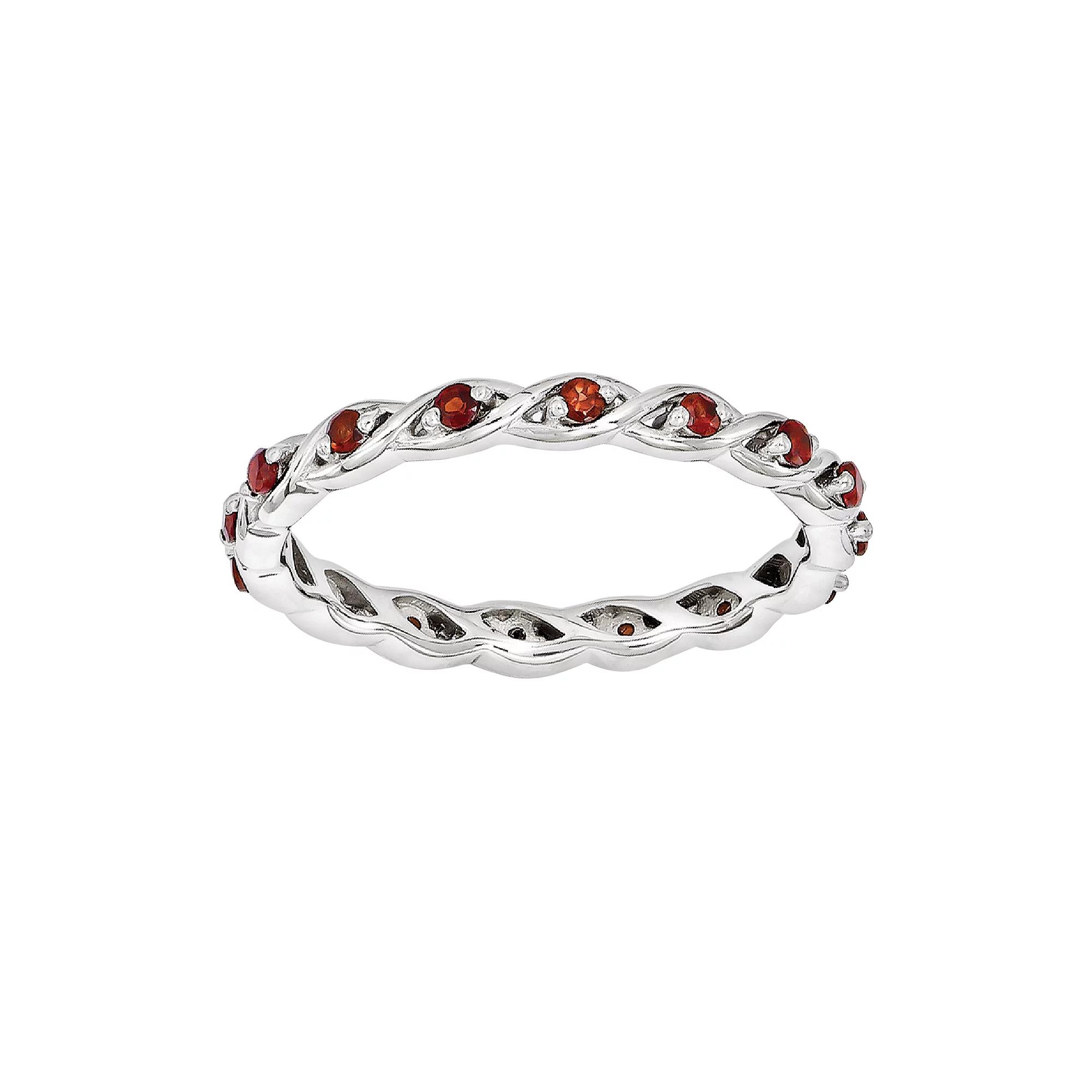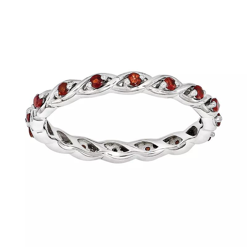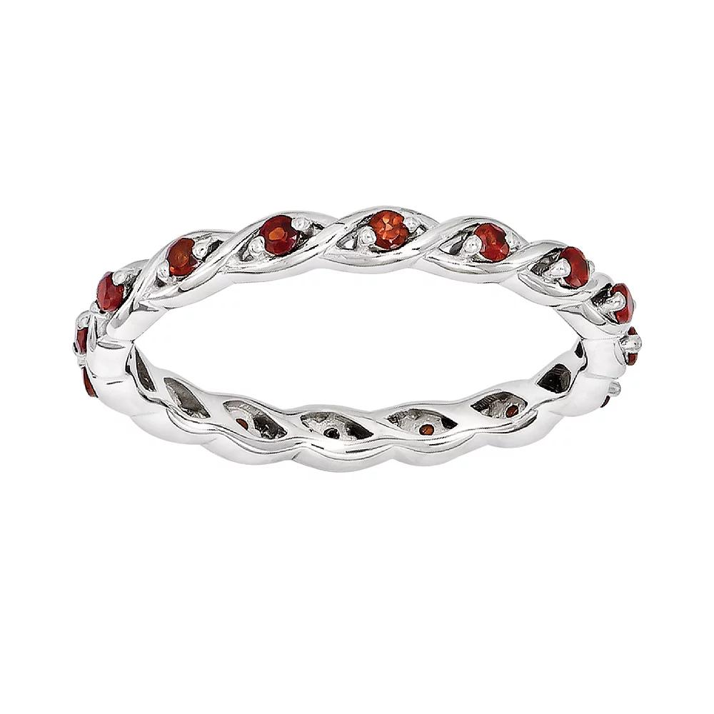 Bright and dazzling, this eternity ring will add a delightful touch to your style. Crafted in sterling silver, this Stackable Expressions ring is decorated with 1/3 ct. t.w. round red garnet gemstones around the band along with high polished finish to add extra sparkle and shine to your look. Available in finger size 5, this January birthstone ring can be worn alone or in a group of other rings. | Belk & Co 1/3 Ct. T.w. Garnet Stackable Expressions Ring In Sterling Silver, White, 9