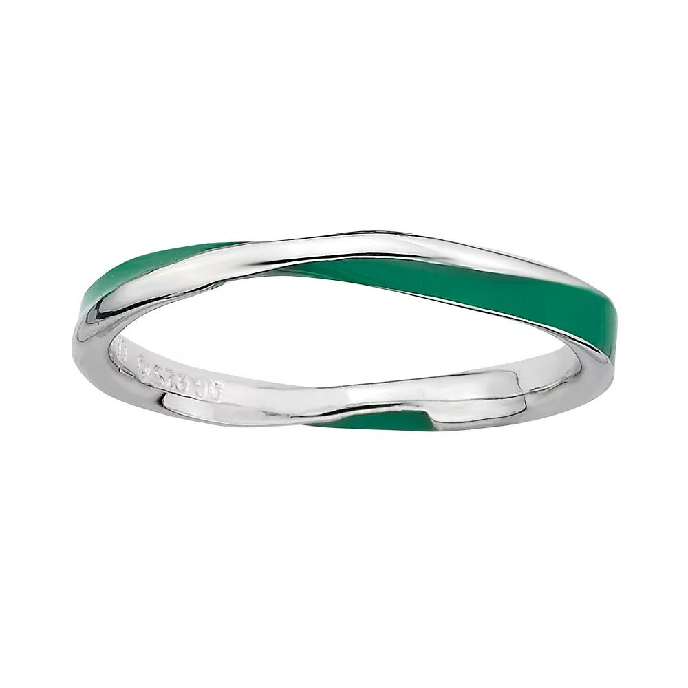 Stacks & Stones Sterling Silver Green Enamel Twist Stack Ring, Women's, Size: 7