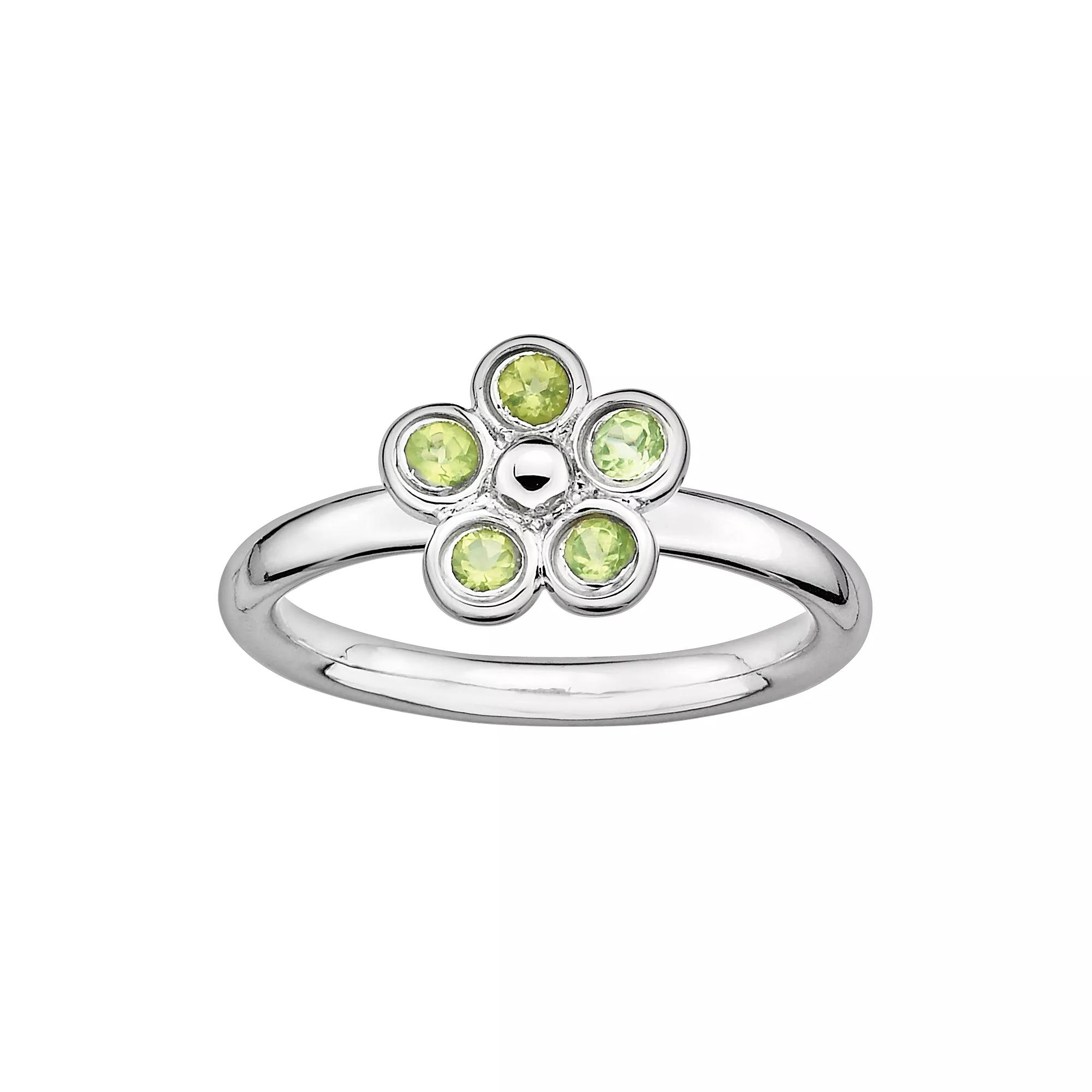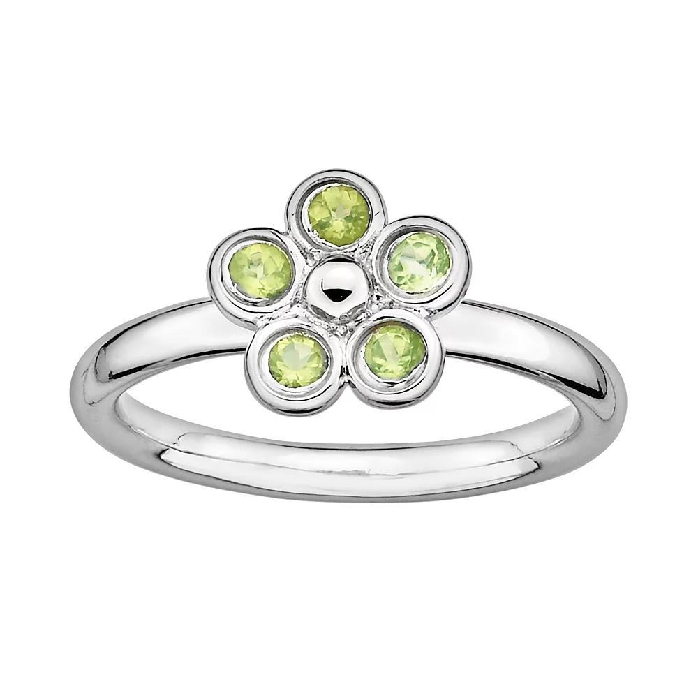 Stacks & Stones Sterling Silver Peridot Flower Stack Ring, Women's, Size: 6, Green